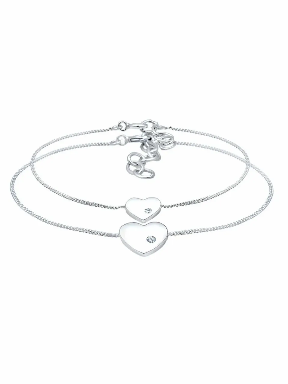 Filigranes Armband Set bestehen aus zwei filigranen Armbändern mit Herz Anhänger. Liebevoll funkelnd mit einen Swarovski® Kristallen besetzt eignet sich dieses Set als Zeichen der Verbundenheit zwischen Mutter und Kind. Einzeln oder auch im Partnerlook ziehen diese Schmuckstücke Blicke der Bewunderung auf sich. Länge der Armbänder: 16cm, erweiterbar um 3cm und 14cm, erweiterbar um 2cm