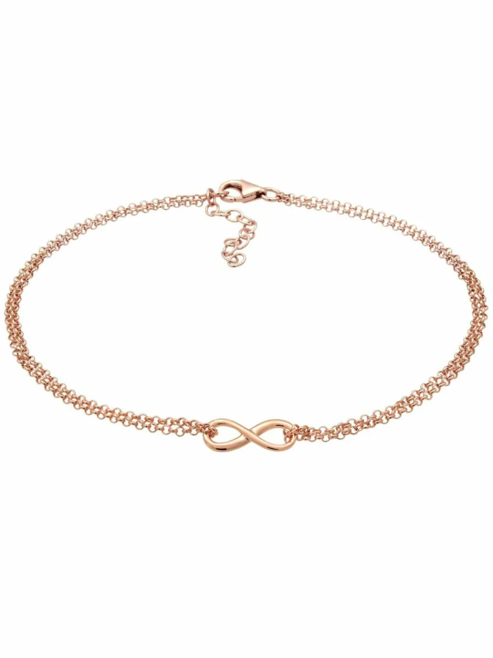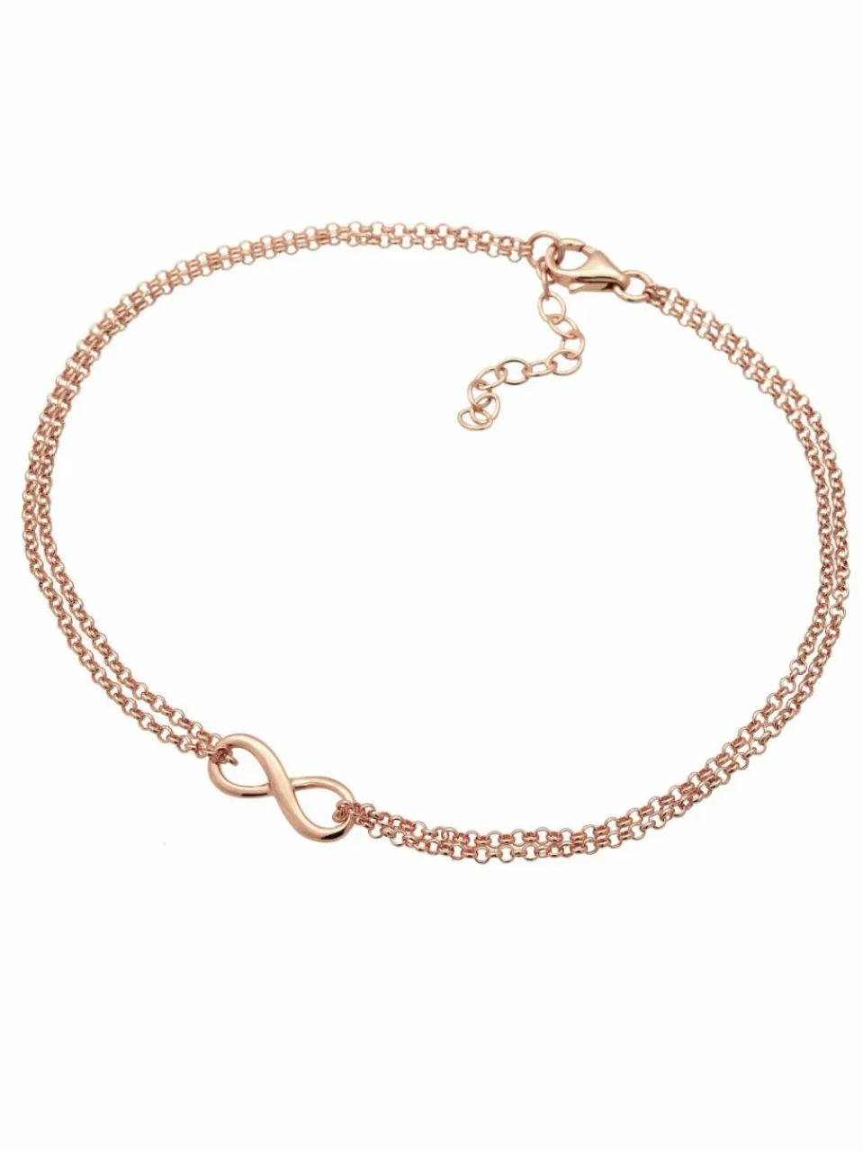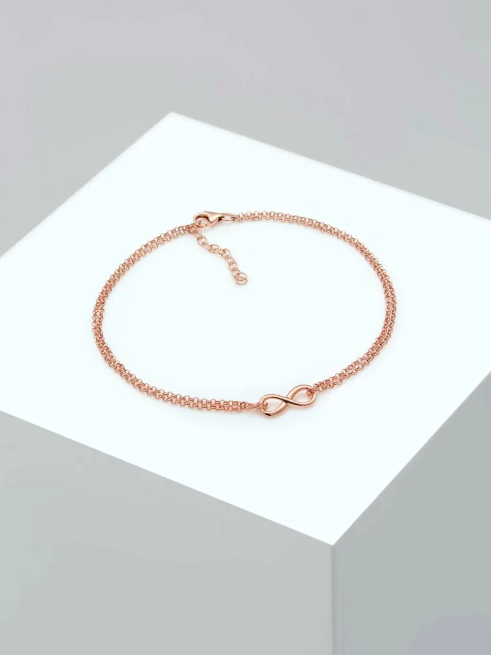 Trendiges Fußkettchen mit Unendlichkeitszeichen. Das Schmuckstück aus einer zeitlosen Erbskette und einem anmutigen Infinity Symbol überzeugt durch seine feminine Optik. Dieses liebevolle Accessoire legt sich perfekt um deine Fußknöchel.