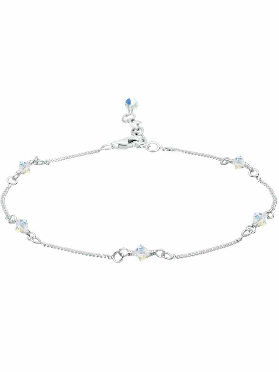 Das zeitlose Design des Damen Fußkettchens aus feinstem 925er Sterling Silber mit funkelnden Beads Kristalle ist ein absoluter Hingucker. Mit verträumter Leichtigkeit ergänzt dieser Echtschmuck dein Schmuckkästchen um ein neues feminines Highlight. Ein Must-Have für alle Frauen die Fashion und Design lieben. Das Fußkettchen ist größenverstellbar und lässt sich um + 3 cm erweitern