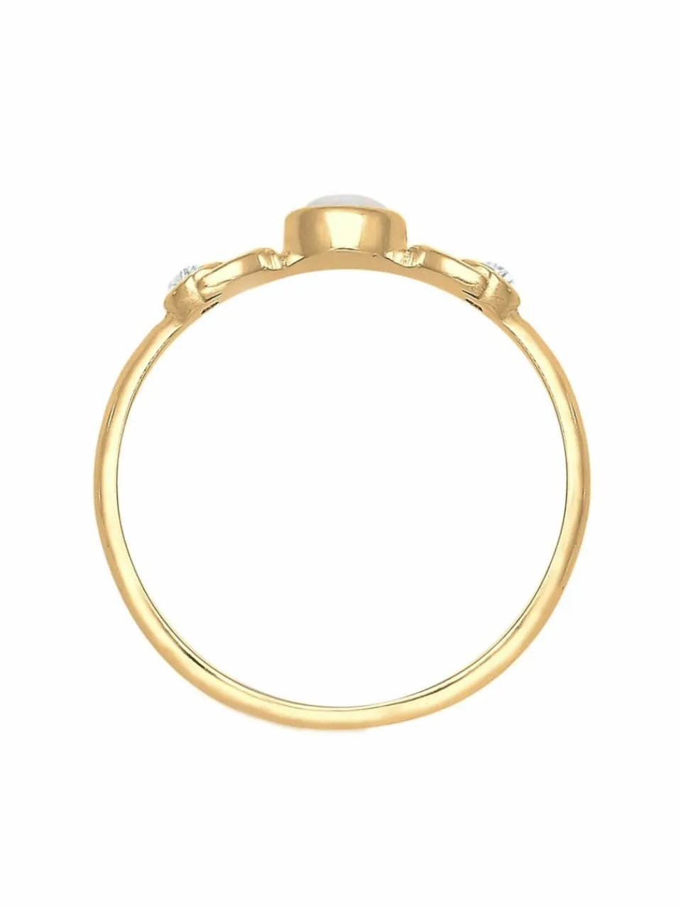 Entdecken Sie den Zauber dieses eleganten Rings aus 925 Sterling Silber, der mit seiner glänzenden Oberfläche und dem bezaubernden Design besticht. Der Ring ist Teil der Astro-Kollektion und vereint handwerkliche Raffinesse mit einem modernen Touch. Im Mittelpunkt steht ein runder, weißer synthetischer Opal im Cabochon-Schliff (Weiß), der von zwei funkelnden Zirkonia-Steinen im Diamantschliff (Weiß) flankiert wird. Diese Kombination verleiht dem Ring eine mystische Aura, die perfekt zu festlichen Anlässen passt. Die Fassung im Zargenstil sorgt für sicheren Halt der Steine und unterstreicht die hochwertige Verarbeitung. Lassen Sie sich von diesem einzigartigen Schmuckstück verzaubern und erleben Sie, wie es Ihr Outfit auf stilvolle Weise ergänzt. Erkunden Sie weitere Schmuckstücke und lassen Sie sich inspirieren.