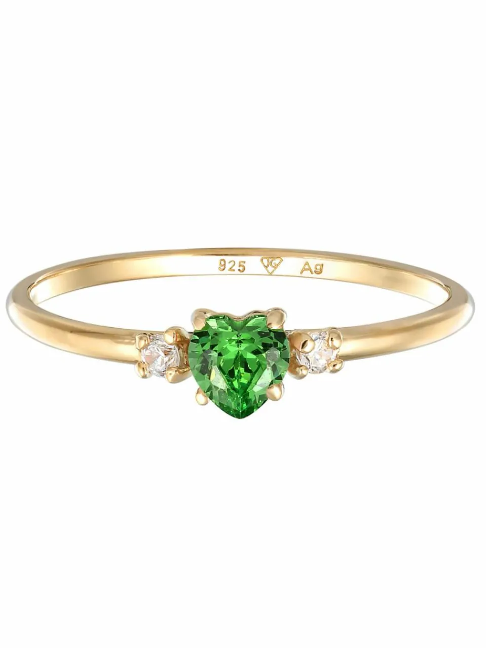 Entdecken Sie den Charme dieses eleganten Rings, perfekt für den Valentinstag. Gefertigt aus 925 Sterling Silber und vergoldet, strahlt dieser Ring eine zeitlose Eleganz aus. Der Herzsymbol-Ring ist mit funkelnden Zirkonia-Steinen besetzt, die in einer Krappenfassung gehalten werden. Der zentrale grüne Zirkonia (Grün) wird von zwei kleineren weißen Zirkonia (Weiß) flankiert, die zusammen ein harmonisches Gesamtbild schaffen.