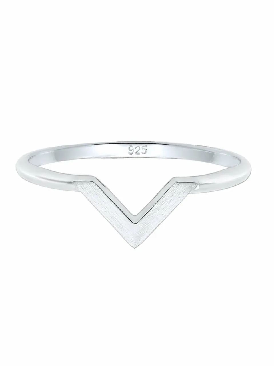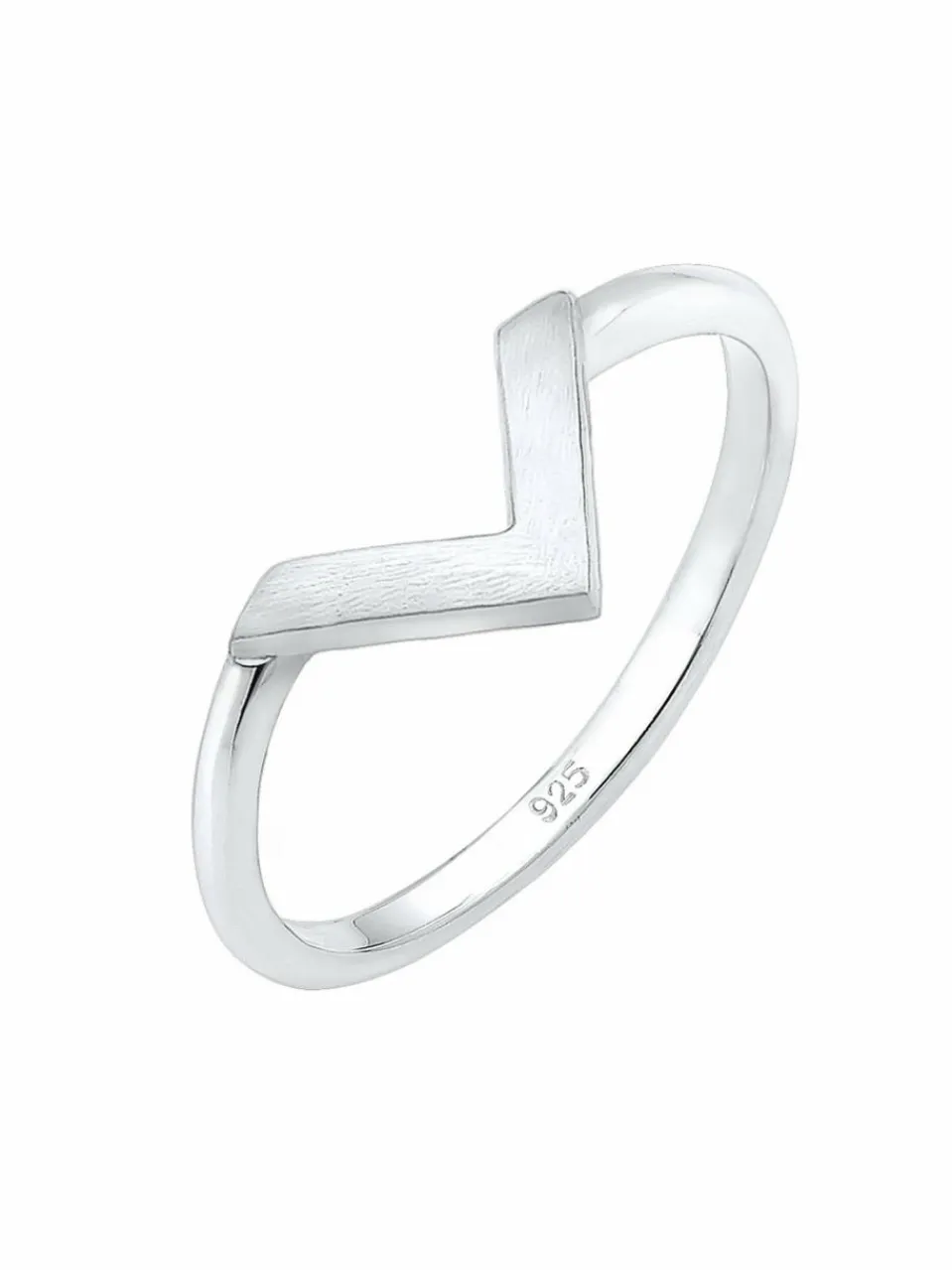 Dieser moderne Ring ist im Geo Look gehalten. Die trendige V-Form des Schmuckstücks schmiegt sich harmonisch um deinen Finger. Das zeitlose Accessoire mit mattiertem Symbol ist ein modischer Basic Fingerschmuck für jeden Tag.