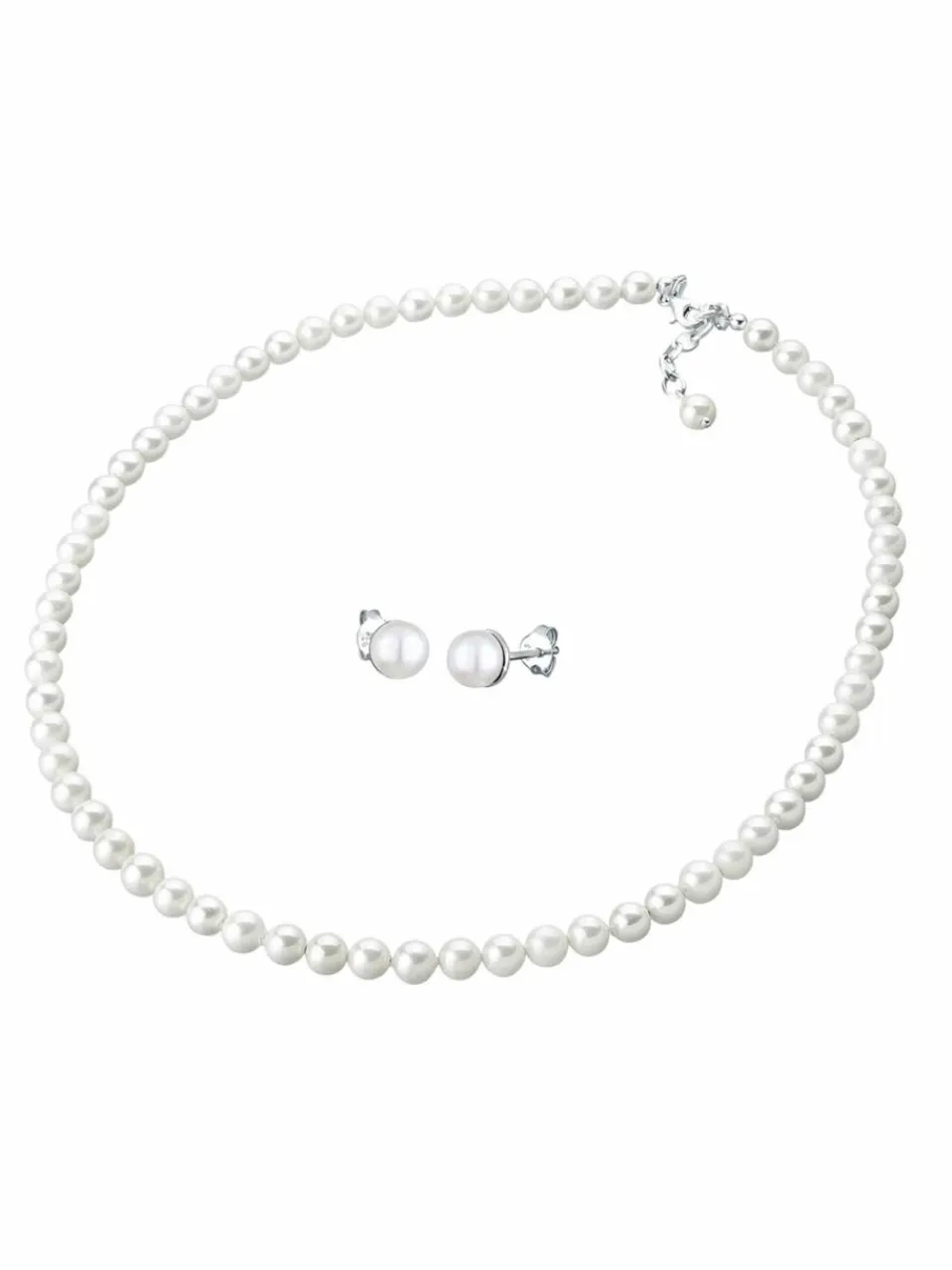 Klassische Muschelkernperlen machen dieses Schmuckset perfekt. Die wunderschöne Perlen Halskette ist vielseitig kombinierbar und klassisch. Passende Ohrstecker mit naturweißen Süßwasserzuchtperle (6mm) komplettieren das edle Set. Ein immer passendes Accessoire mit faszinierendem Glanz.