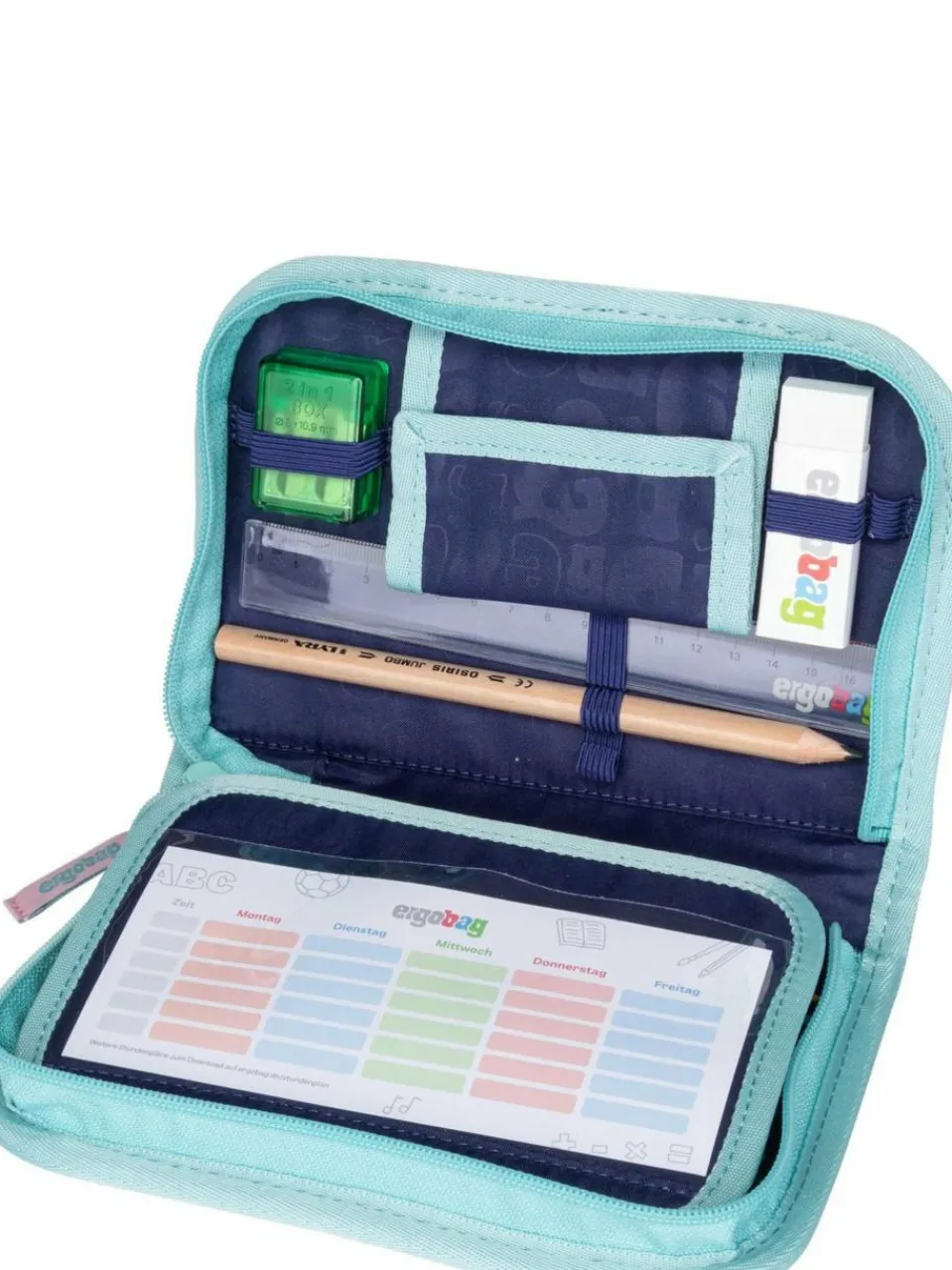 Set von ergobag, ideal für größere Erstklässler, aus recyceltem, wasserabweisendem Polyester mit leuchtenden Farbeffekten für mehr Sicherheit. Stil und Organisation fü den Schulalltag!