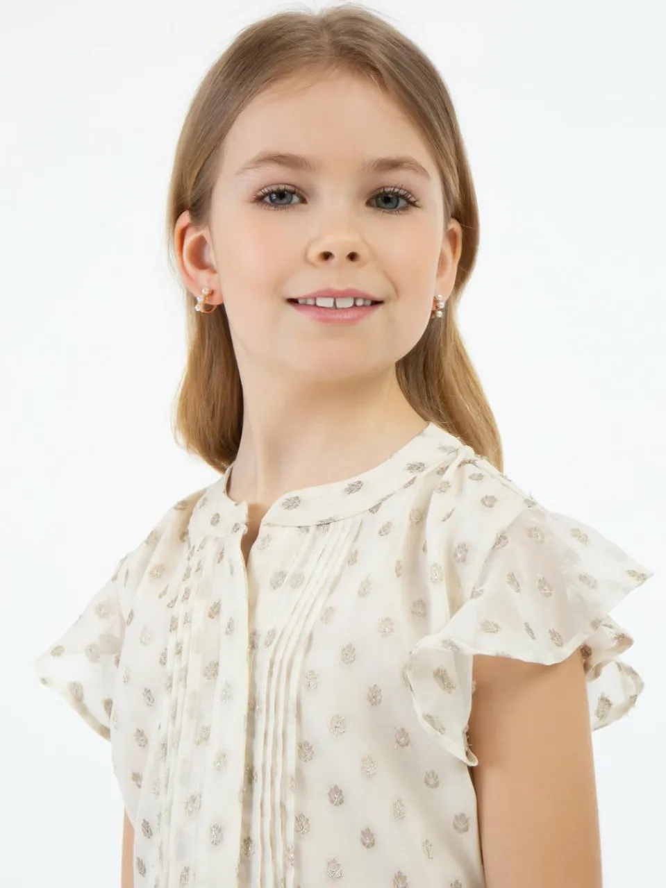 Faina Mädchen<Mädchen Bluse weiß gepunktet