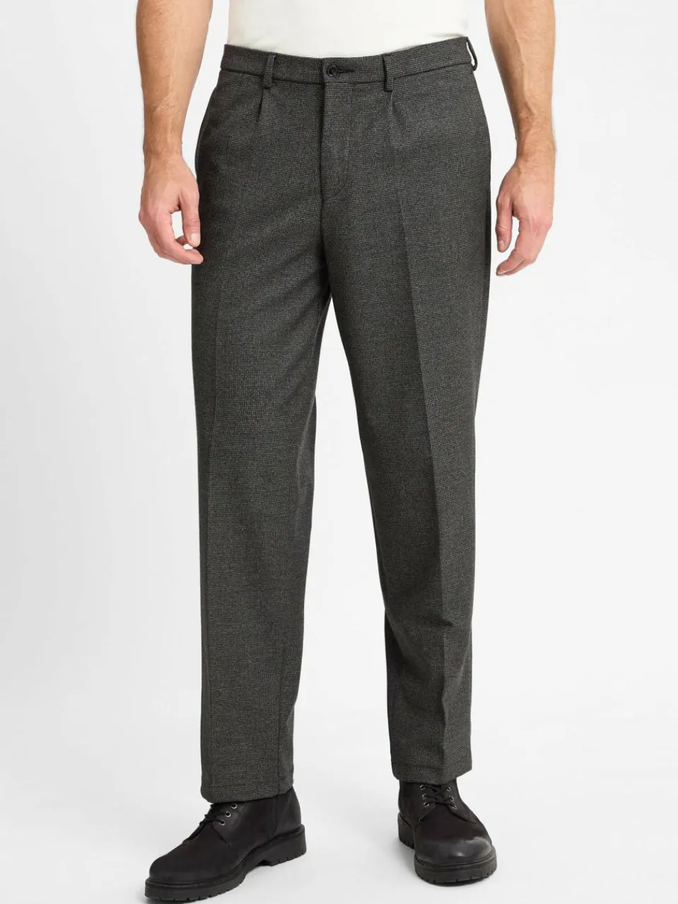 Die Hose Marlon von Finshley & Harding London mit dezentem Karomuster sieht sowohl tagsüber als auch abends schick aus.