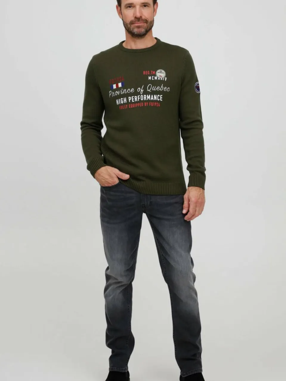 FQ1924 Pullover & Strickjacken<Herren Strickpullover – FQErlo grün bedruckt