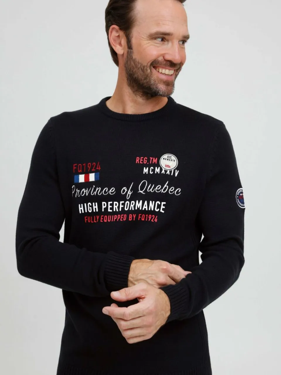 FQ1924 Pullover & Strickjacken<Herren Strickpullover – FQErlo schwarz bedruckt