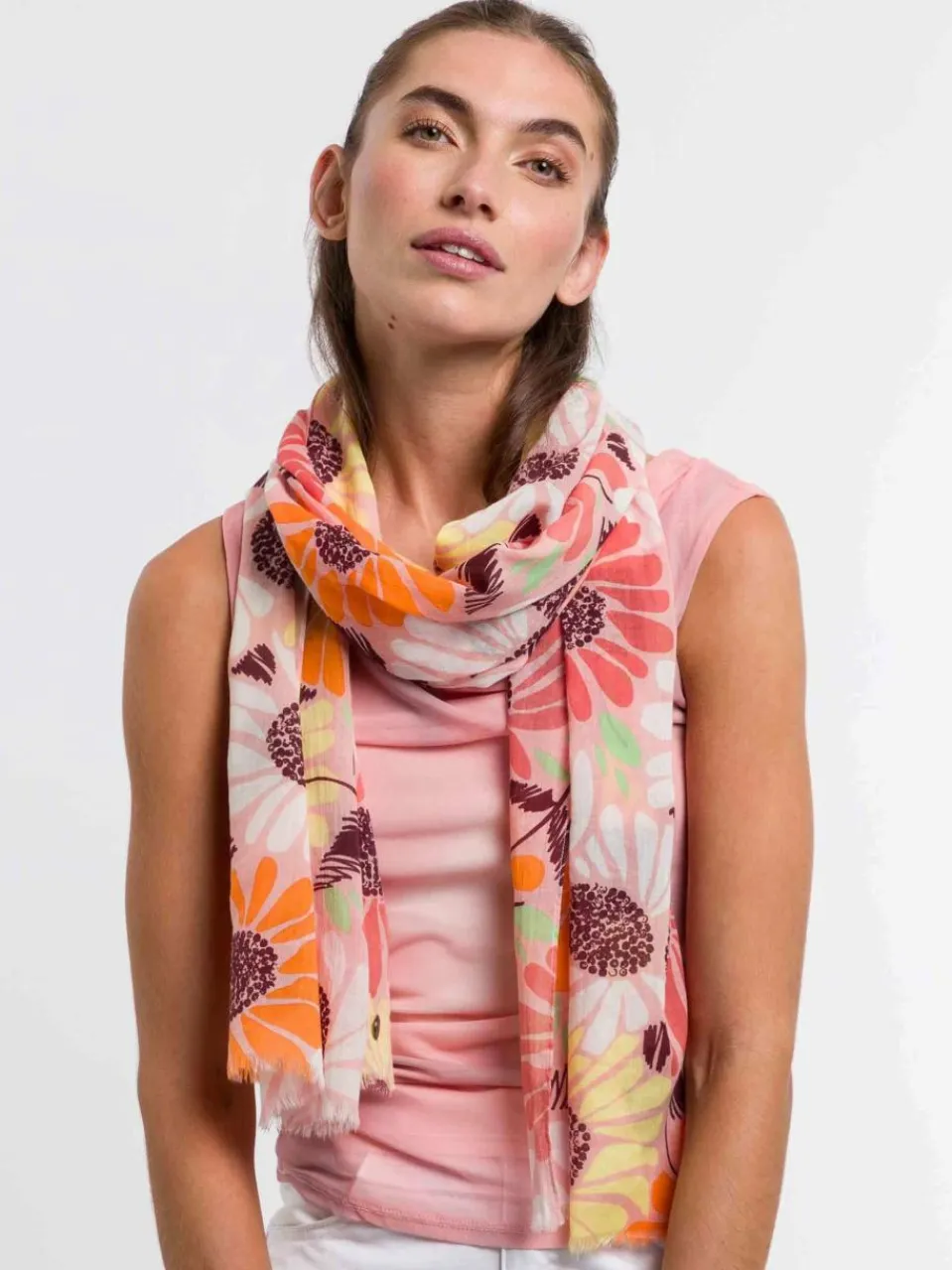 Der passt zu allem: Der leichte Schal mit buntem Blumen-Druck besteht aus reiner Baumwolle und lässt sich kinderleicht kombinieren. An kühleren Tagen wird er als Schal um den Hals gewickelt, als eleganter Hingucker zum Sommerkleid wird er als Stola um die Schultern gelegt. Und als verspieltes Accessoire wird er als Gürtel durch die Gürtelschlaufen gefädelt. Der 50 x 180 cm große FRAAS Schal wird in kürzester Zeit Ihr liebstes Sommer-Accessoire.