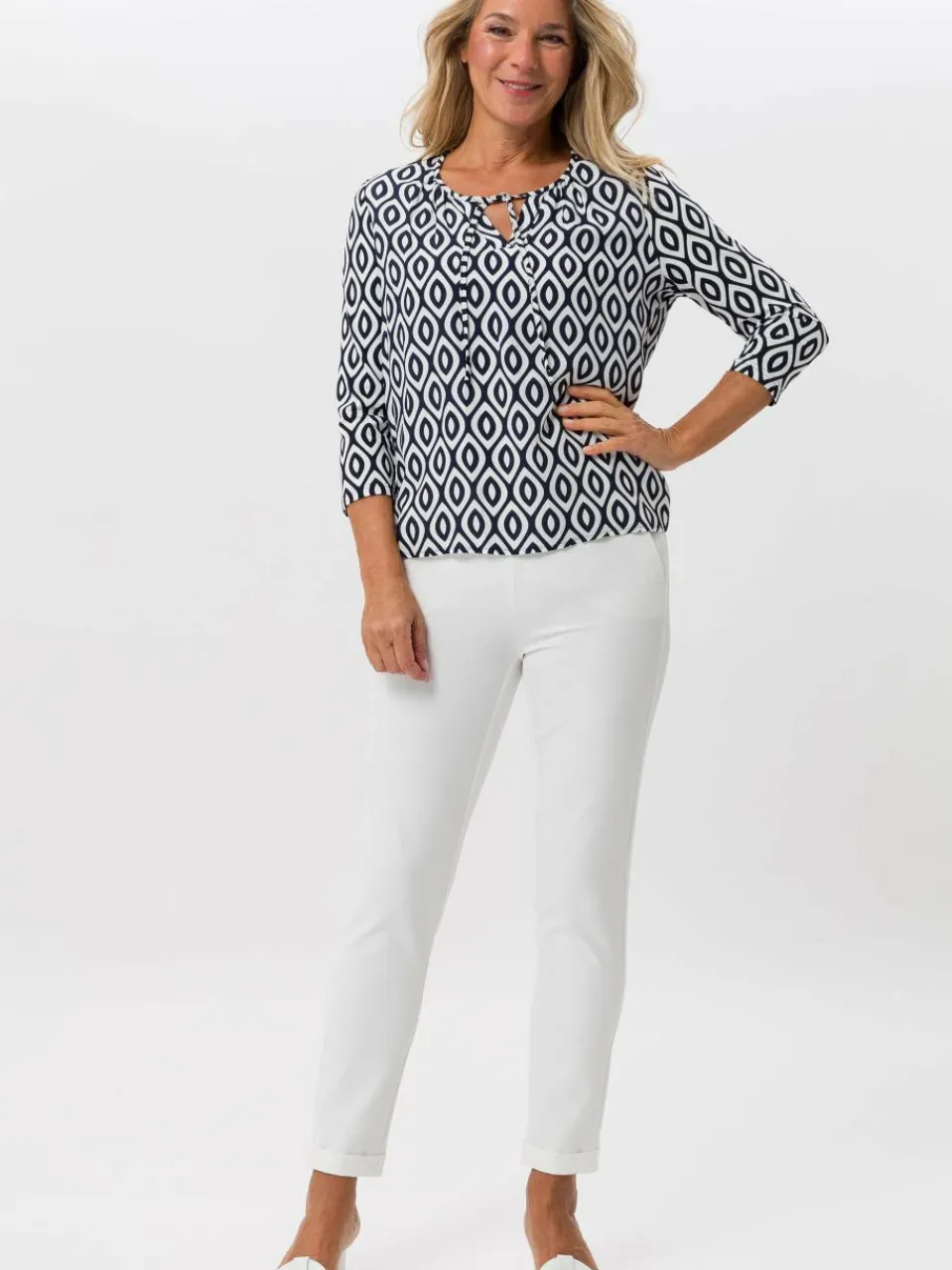 Frank Walder Blusen<Damen Blusenshirt weiß blau gemustert