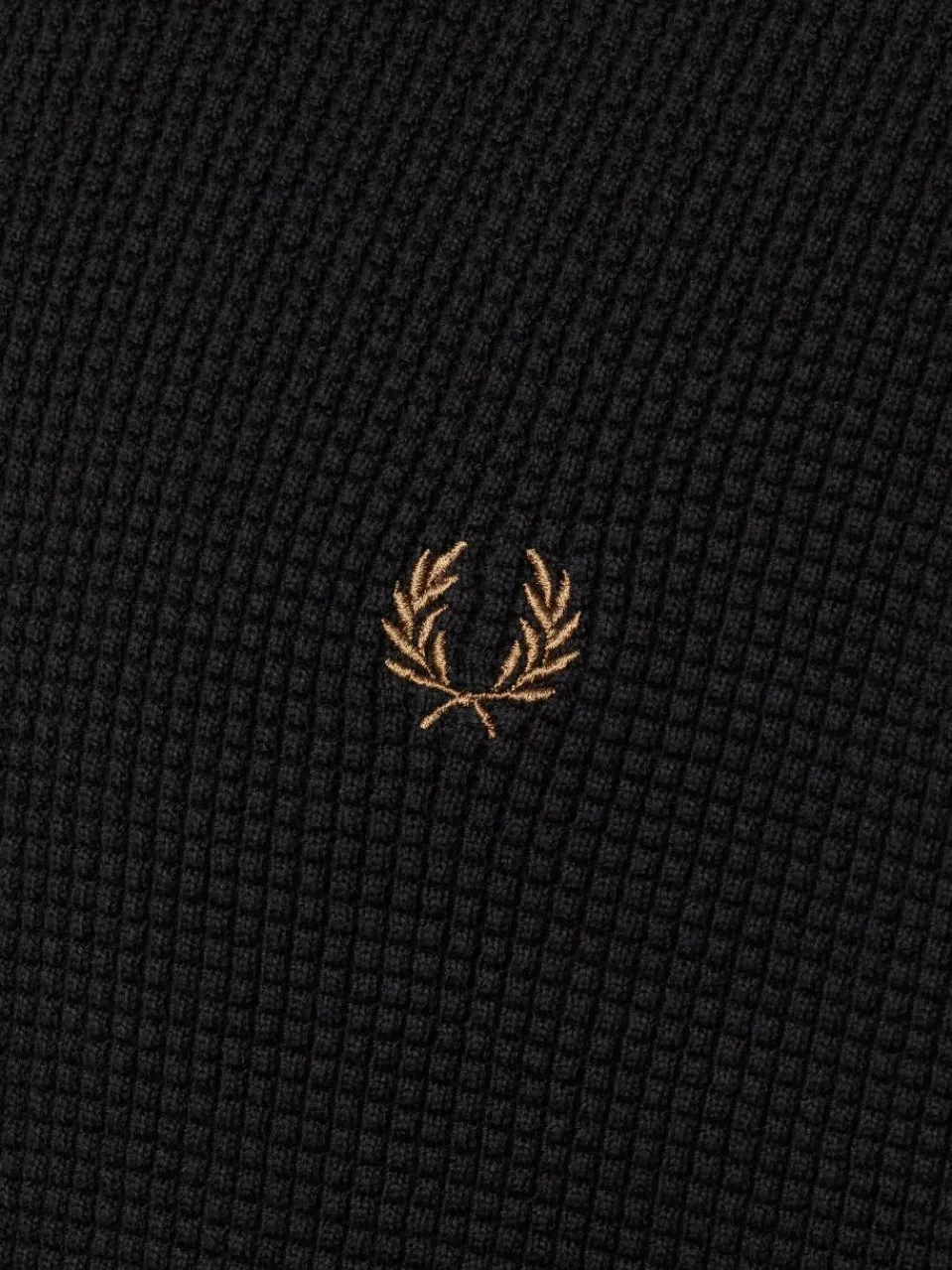 Die Logo-Stickerei und Streifen an den Rippbündchen vollenden den Pullover von Fred Perry aus Waffelstrick mit coolen Akzenten.
