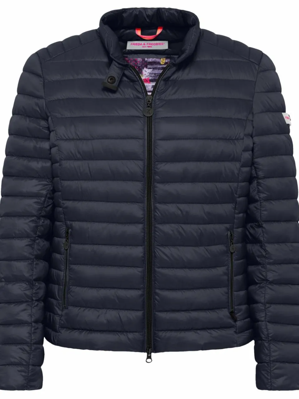 Die Steppjacke von Frieda & Freddies bringt mit ihrem recycelten Polyester nicht nur das Mode-, sondern auch das Umweltgewissen zum Lächeln. Ihr taillierter Schnitt umschmeichelt die Figur, während die zahlreichen Taschen mit originellen Prints kleine Geheimnisträger sind. Der flexible Zwei-Wege-Reißverschluss bewegt sich wie ein Yoga-Meister, und das gesteppte Design zwinkert elegant. Die Label-Applikation am Ärmel ist ein stolzes, aber unaufdringliches Markenzeichen, das leise flüstert: