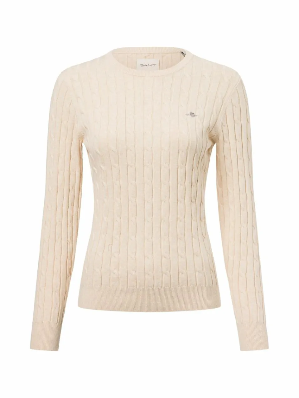 Der GANT Strickpullover aus dehnbarem Baumwollmaterial mit klassischem Kabelmuster ist eine stilvolle Ergänzung für jede Garderobe.
