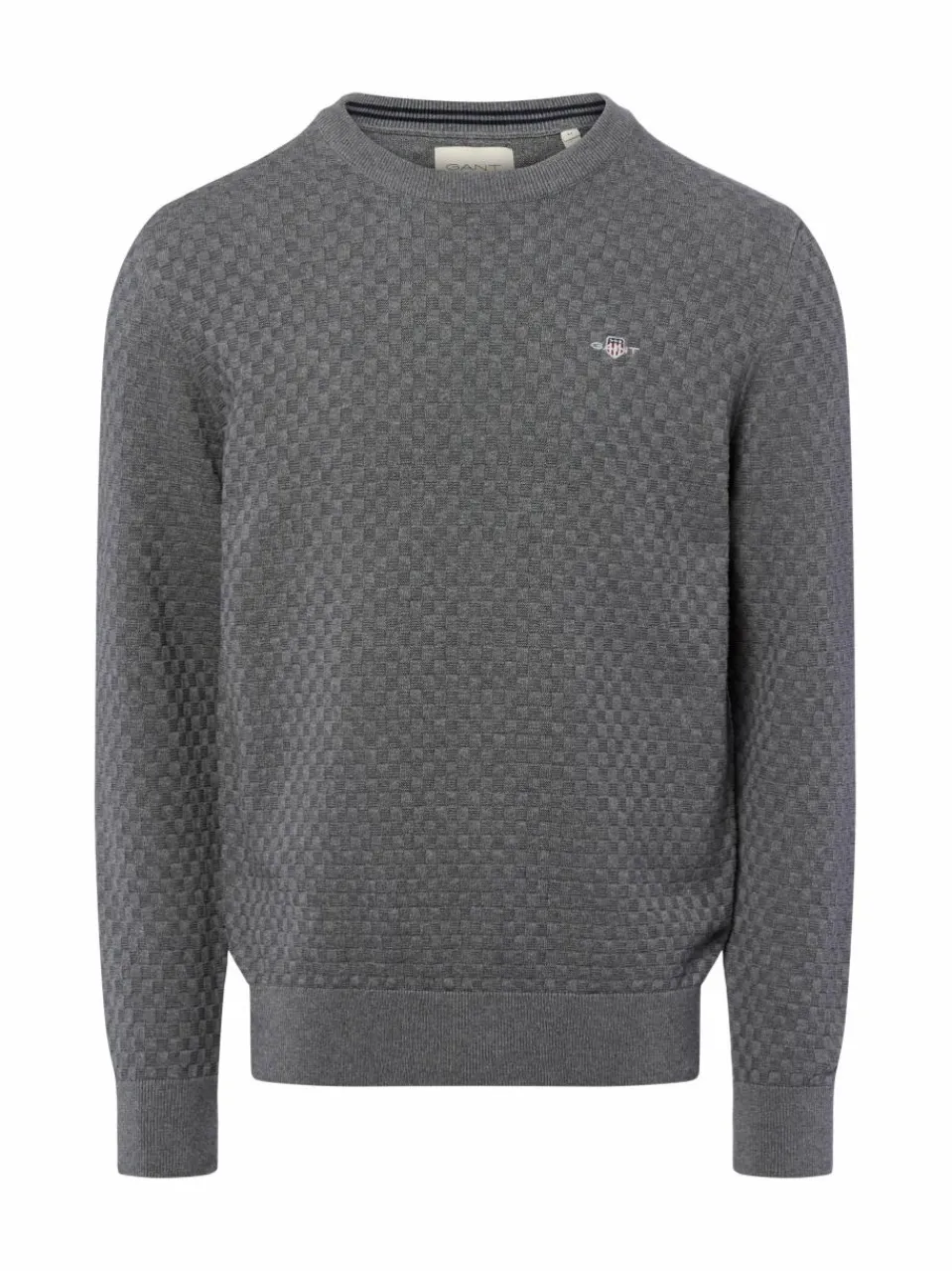 Mit strukturierter Waffeloptik, Rippsaum und feinem Logo-Stitching verbindet der Strickpullover von GANT Komfort und Stil auf smarte Weise.