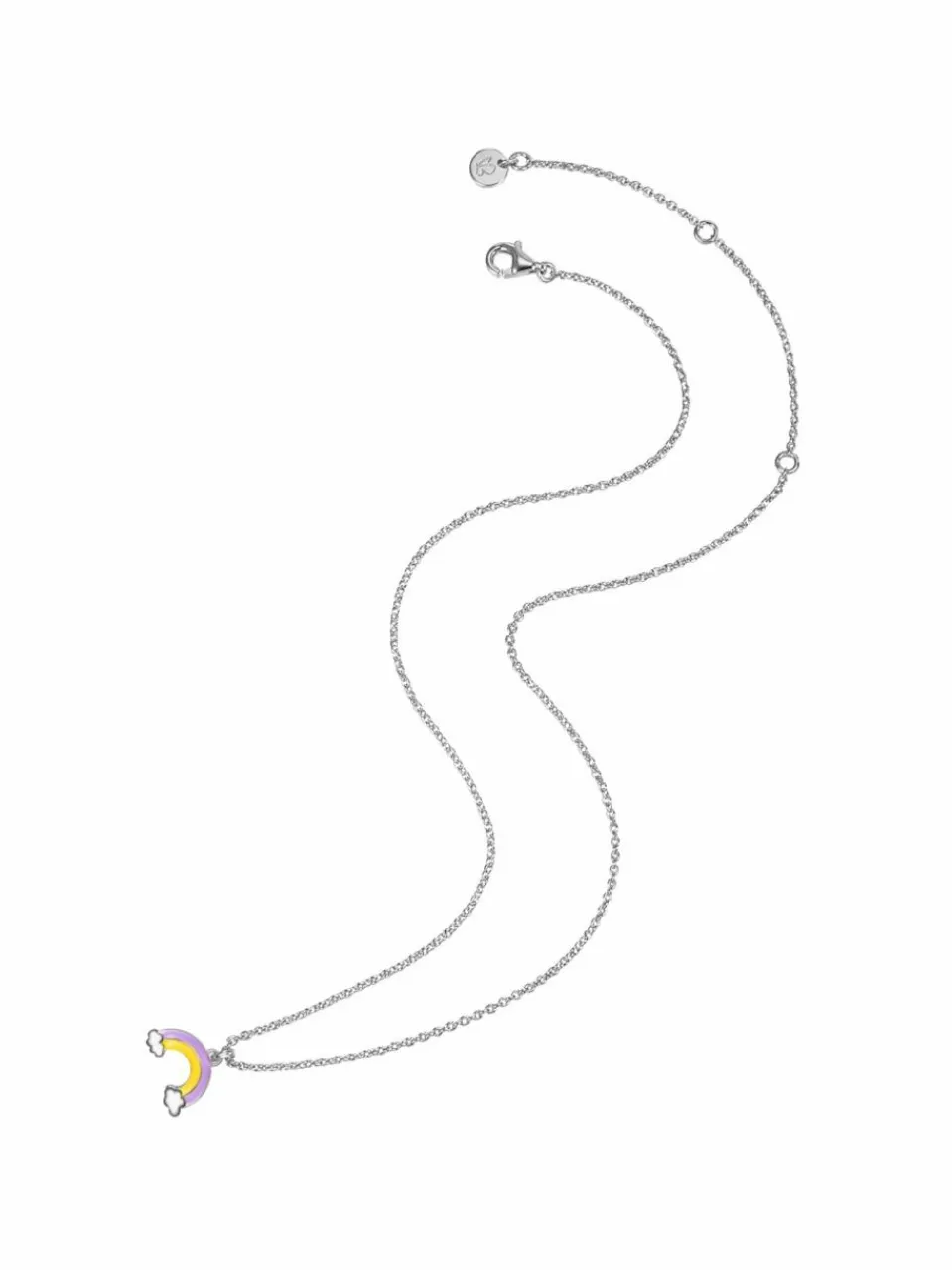 Du suchst ein niedliches, aber zeitgemäßes Schmuckstück für junge Tagträumerinnen und Fashionistas von morgen? Dann ist diese Kette der Kinder-Kollektion KINDERGLANZ von Glanzstücke München die ideale Wahl. Eine zarte Ankerkette trägt einen stilisierten Anhänger in Regenbogenform, verziert mit einer bunten Emaillierung. Kette und Anhänger sind aus 925er Sterling Silber gefertigt und durch eine hochwertige und hautfreundliche Rhodinierung vor dem Anlaufen geschützt.