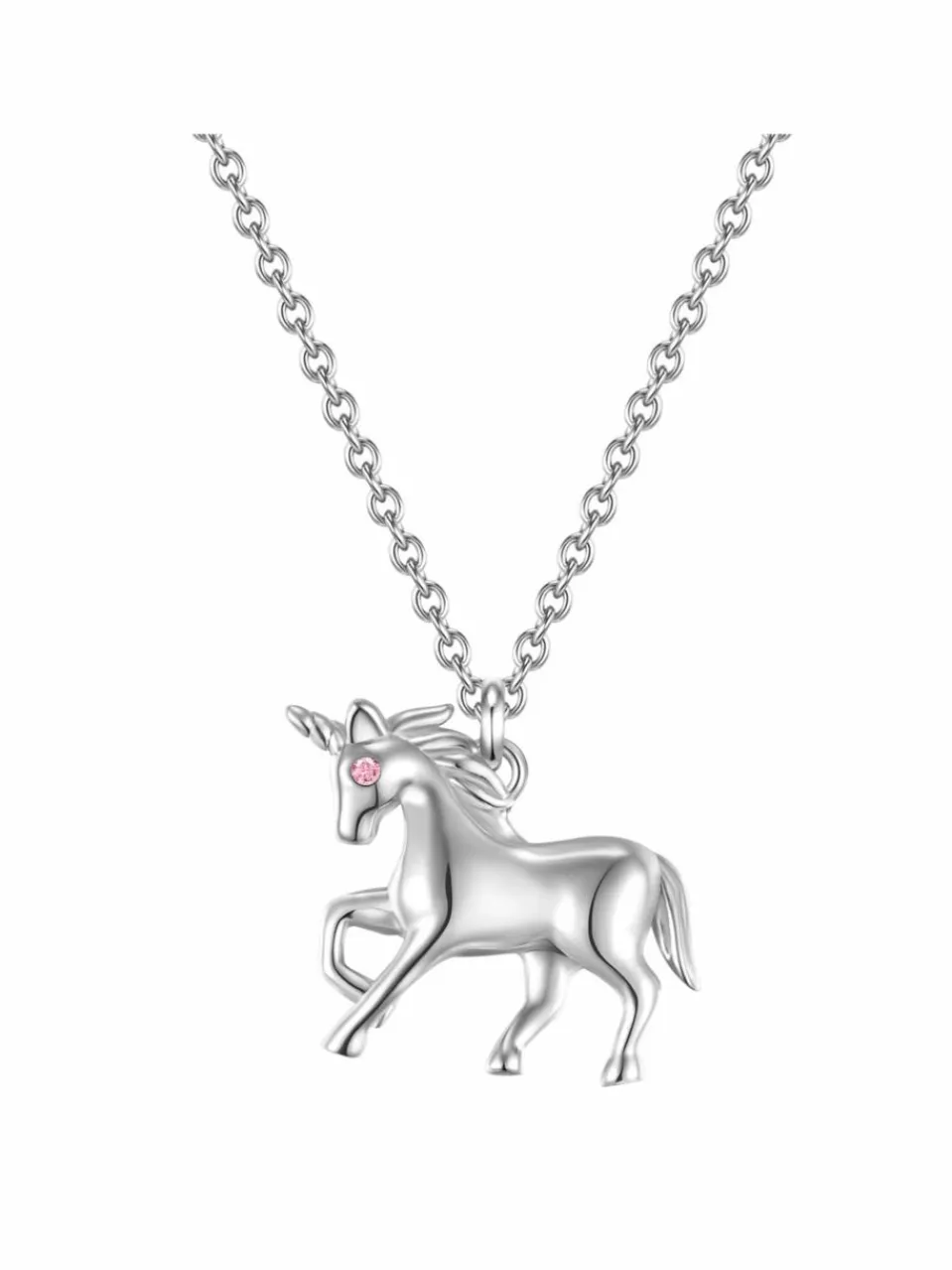 Einhörner sind anmutig, unsterblich und ein Symbol für das Gute und Schöne – und damit ein starker Talisman. Die bezaubernde Motivkette der Kinder-Kollektion KINDERGLANZ von Glanzstücke München ist ein fabelhafter Begleiter für kleine und große Fashionistas: An der filigranen Ankerkette baumelt ein verspielter Einhorn-Anhänger, verziert mit einem glitzernden Zirkonia-Kristall.