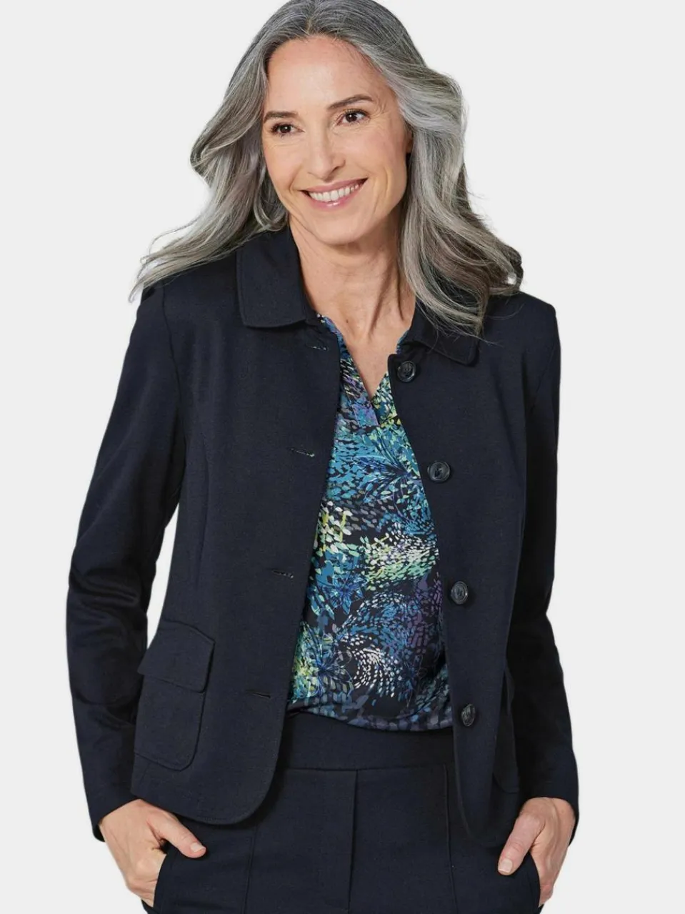 - Langarm Indoorjacke mit Wiener Nähten für perfekte Passform, kleiner Kragen
