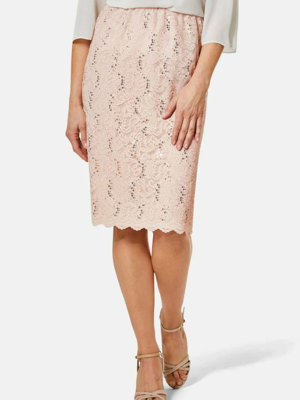 Goldner Röcke<Damen Spitzenrock – Schicker Rock aus elastischer Spitze rosa strukturiert