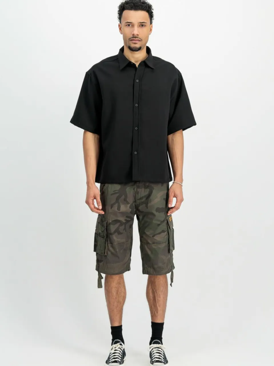 Die Jet Camo Short vereint Komfort, Funktionalität und markanten Stil. Der Regular Fit sorgt für Bewegungsfreiheit, während der robuste Cotton Twill aus Baumwolle strapazierfähig und angenehm zu tragen ist. Mit zwei Einschub- und Cargotaschen bietet sie praktischen Stauraum. Das genähte Alpha Patch und das Loop Label setzen stilvolle Akzente. Vielseitig kombinierbar, ist sie ideal für Freizeit und Abenteuer – perfekt für einen lässigen Sommer-Look oder kühlere Tage.