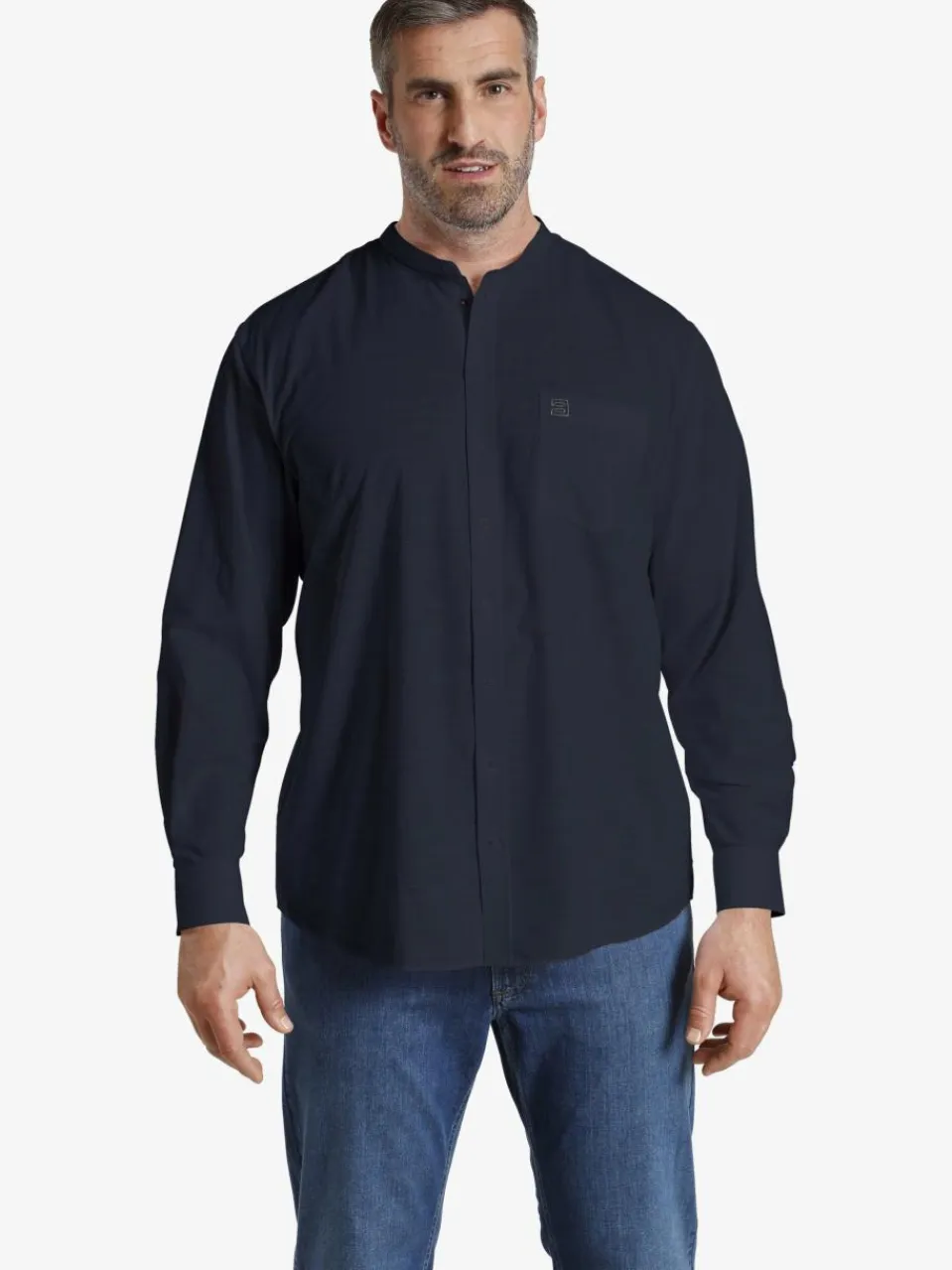 - Kurzer Stehkragen mit Knopf