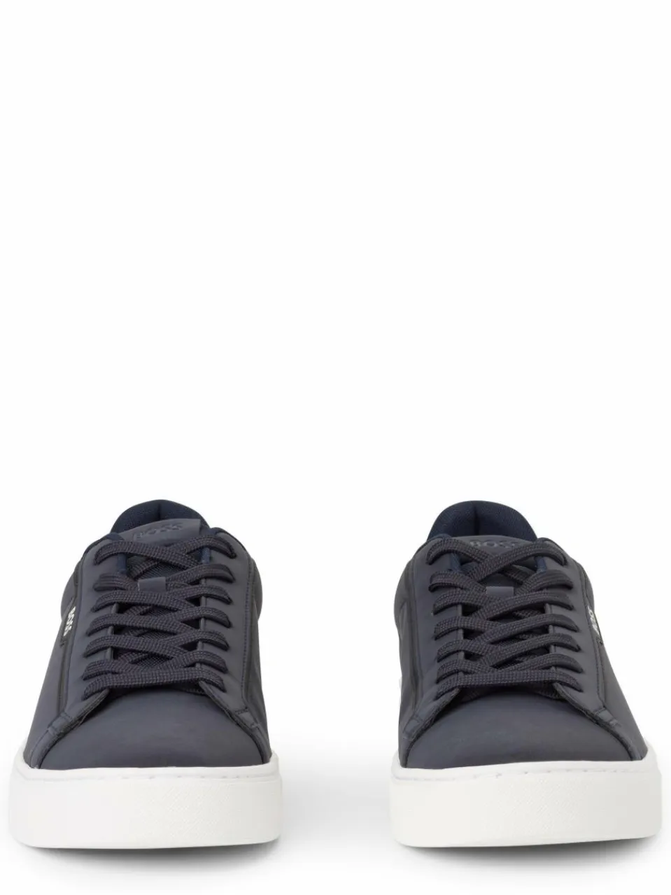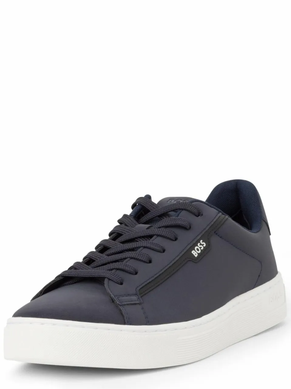 Der Kontrast zwischen der Kunstleder-Verarbeitung und der markanten Laufsohle kreiert den casual-spotiven Look des BOSS Sneakers Rhys_Tenn_nupu.