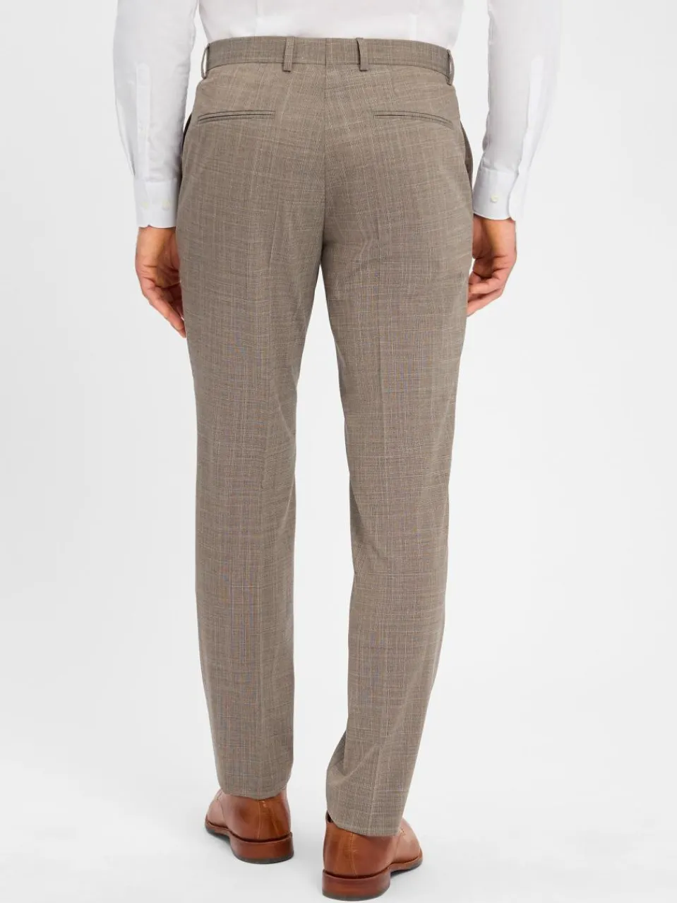 Die Anzughose Leon von BOSS zeichnet sich durch ihr klassisches Design mit verdeckter Zipperschließe, Bügelfalten sowie Paspelgesäßtaschen aus. Die Hose ist Teil eines Baukasten-Anzugs, kann aber auch allein getragen werden.