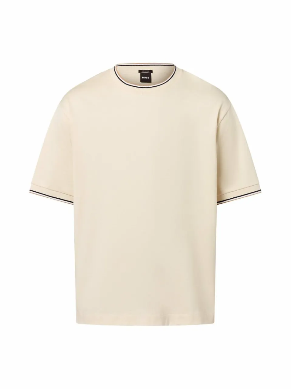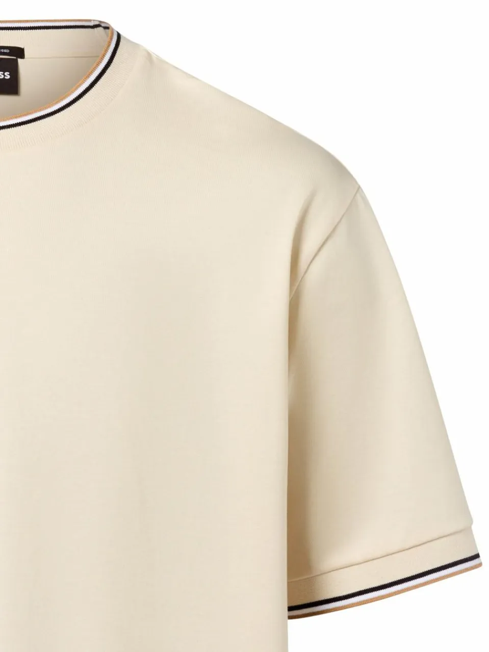 Das T-Shirt Tames von BOSS aus merzerisierter Baumwolle erweist sich als cleanes Basic mit coolen Kontrastbündchen und lässigem Schnitt – perfekt für gepflegte Freizeit-Looks.