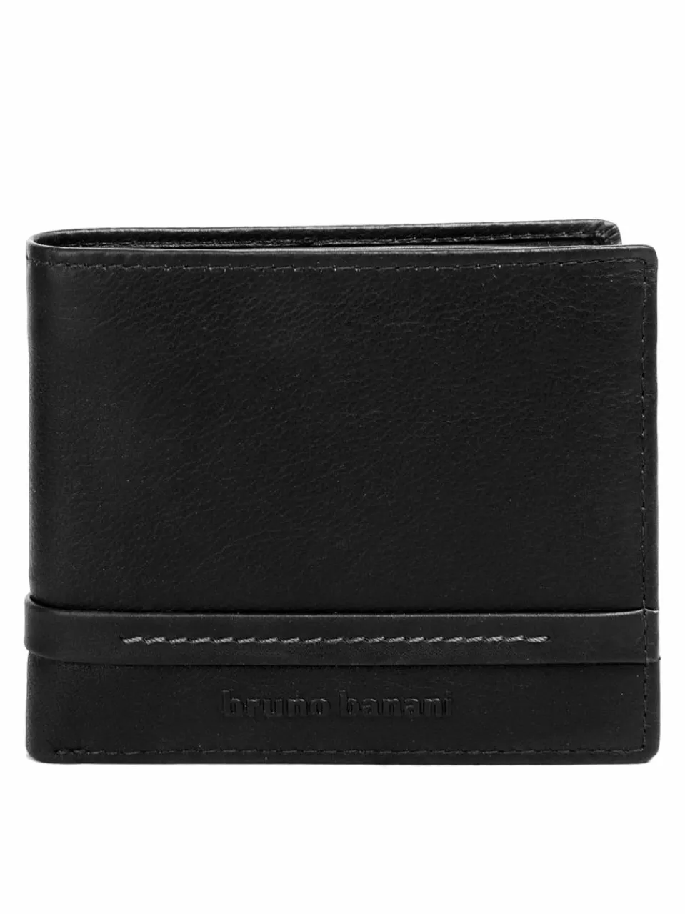 Ein Klassiker: Die Leder Geldbörse aus dem Hause bruno banani im zeitlosen & edlen Look. Simpel und funktional werden all Ihre Karten und Bargeldoptionen aufbewahrt. 2 Schein-, 2 Karten- & 4 Steckfächer, 1 Netz- & 1 Münzfach mit Druckknopfverschluss ermöglichen Ihnen eine sichere & kompakte Verwahrung. Das Sichtfach ist ideal für Fahrausweise und Bahnkarten. Auffallend: die akzentuierten Sattlernähte an der Vorderseite.