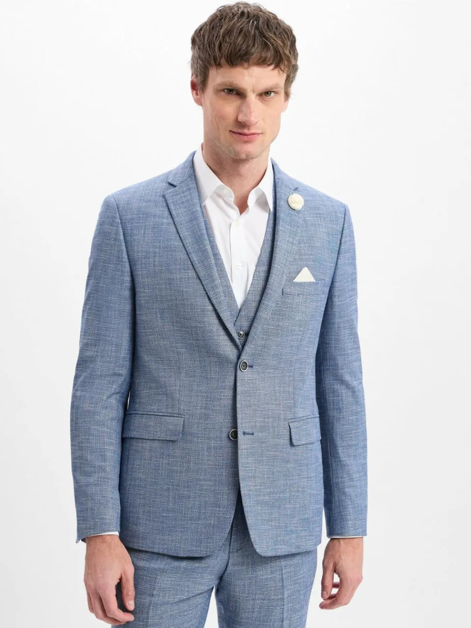 Das Sakko Steven von Finshley & Harding überzeugt durch seinen angenehmen Tragekomfort und den tollen Materialmix mit Viskoseanteil. Die Jacke ist Teil einer Kombination, kann aber auch einzeln getragen werden.