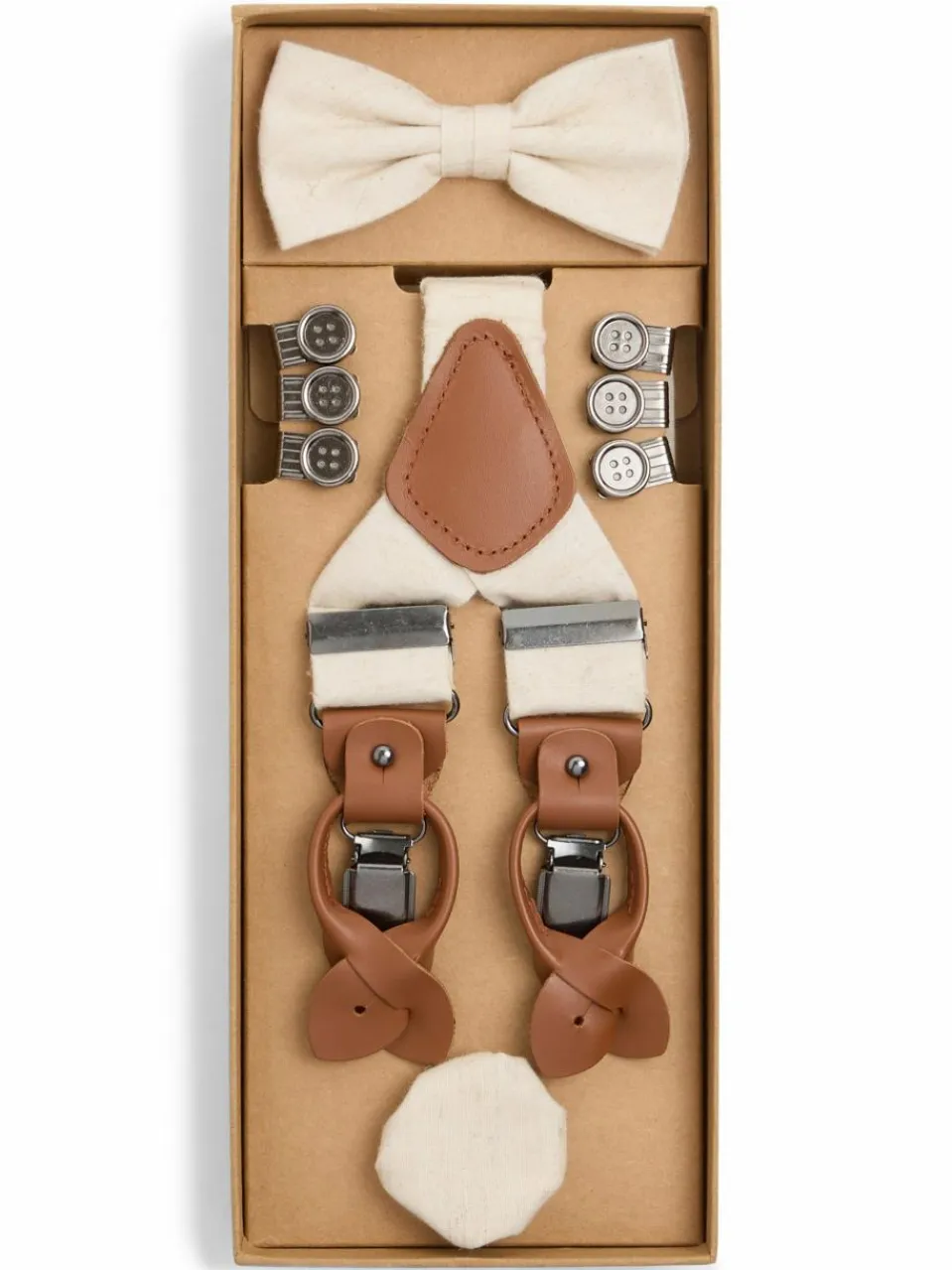 - Set aus Fliege, Einstecktuch und Hosenträgern