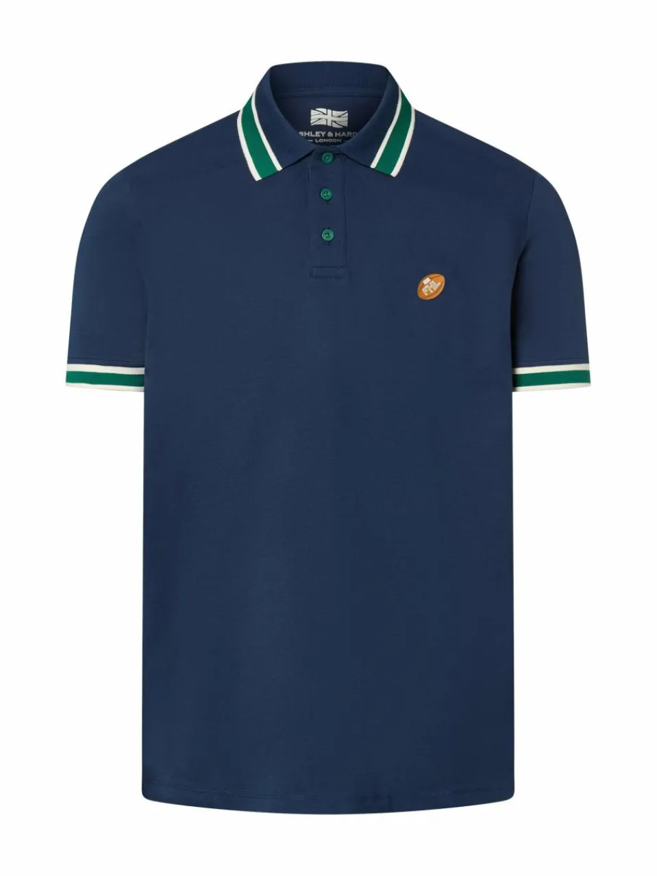 Das Mini-Logo auf Brusthöhe akzentuiert den sportiven Look des Poloshirts von Finshley & Harding London zusammen mit den gestreiften Details am Kragen und an den Ärmelbündchen.