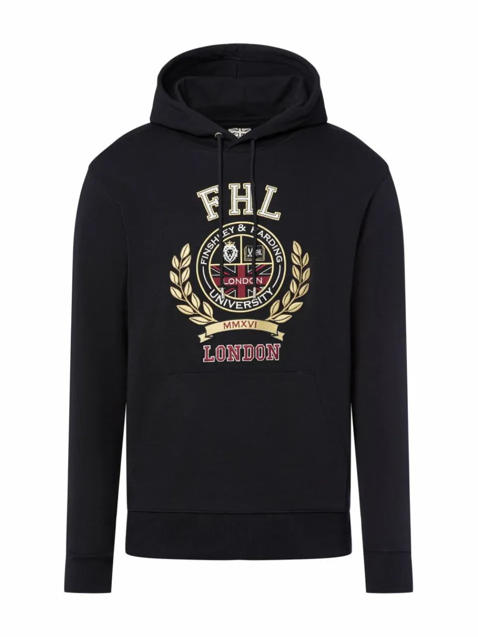 Das sorgfältig gearbeitete Wappen-Stitching an der Vorderseite verleiht dem Hoodie von Finshley & Harding London einen coolen University-Charme.