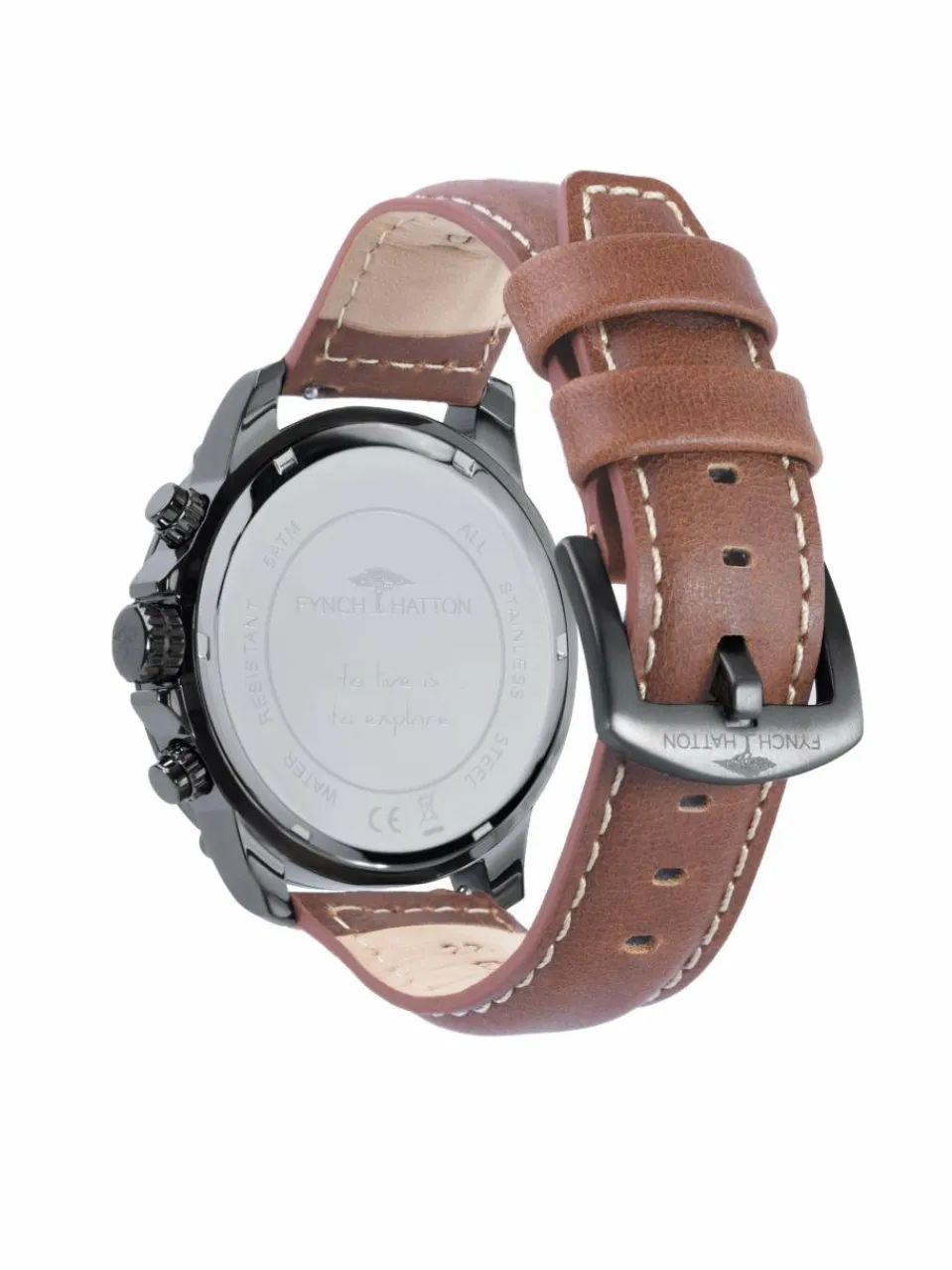Edelstahlarmbanduhr mit Chronographenfunktion und Lederband von Fynch-Hatton.