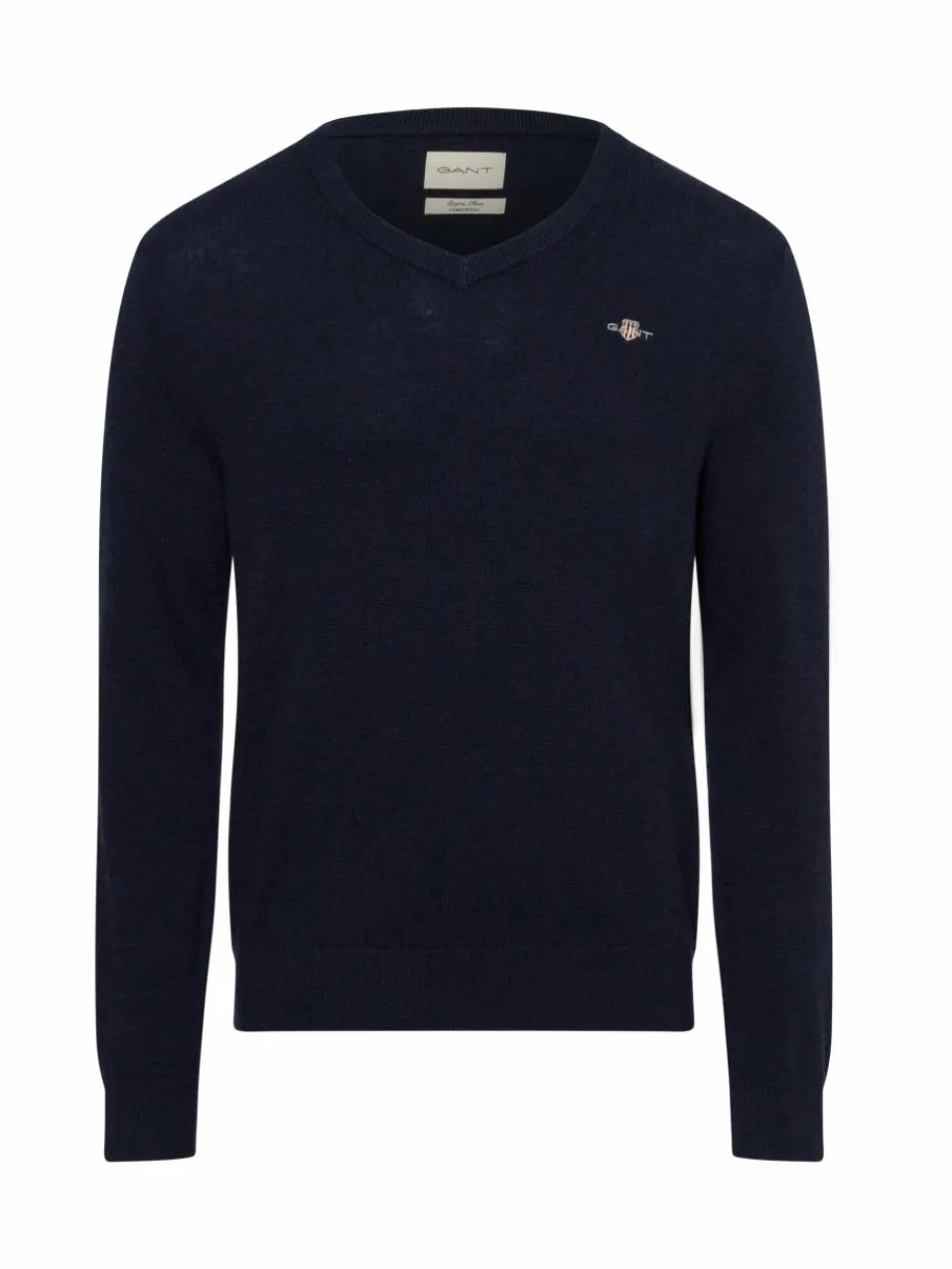 Ein wunderbarer Pullover aus kuscheliger Wolle: Mit dem zarten Logo-Design und dem zeitlosen V-Ausschnitt ist dieser Pullover von Gant eine echte Bereicherung für deine Casual-Garderobe.