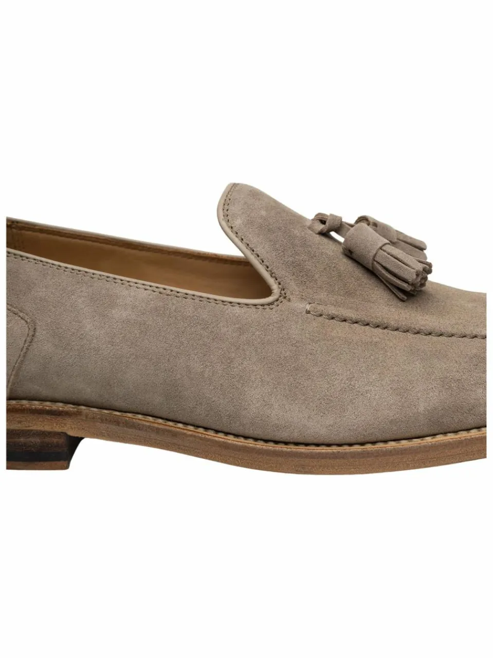 Der Marshall Tassel Loafer ist ein rahmengenähter Slipper mit schmaler Passform. Er ist aus braunem Kalbsvelours und vegetabil gegerbetes Innenfutter aus Bio-Kalbsleder gefertigt. Diese Materialkombination sorgt für ein angenehmes Tragekomfort und macht dieses Modell zur perfekten Ergänzung ihrer Sommeroutfits.