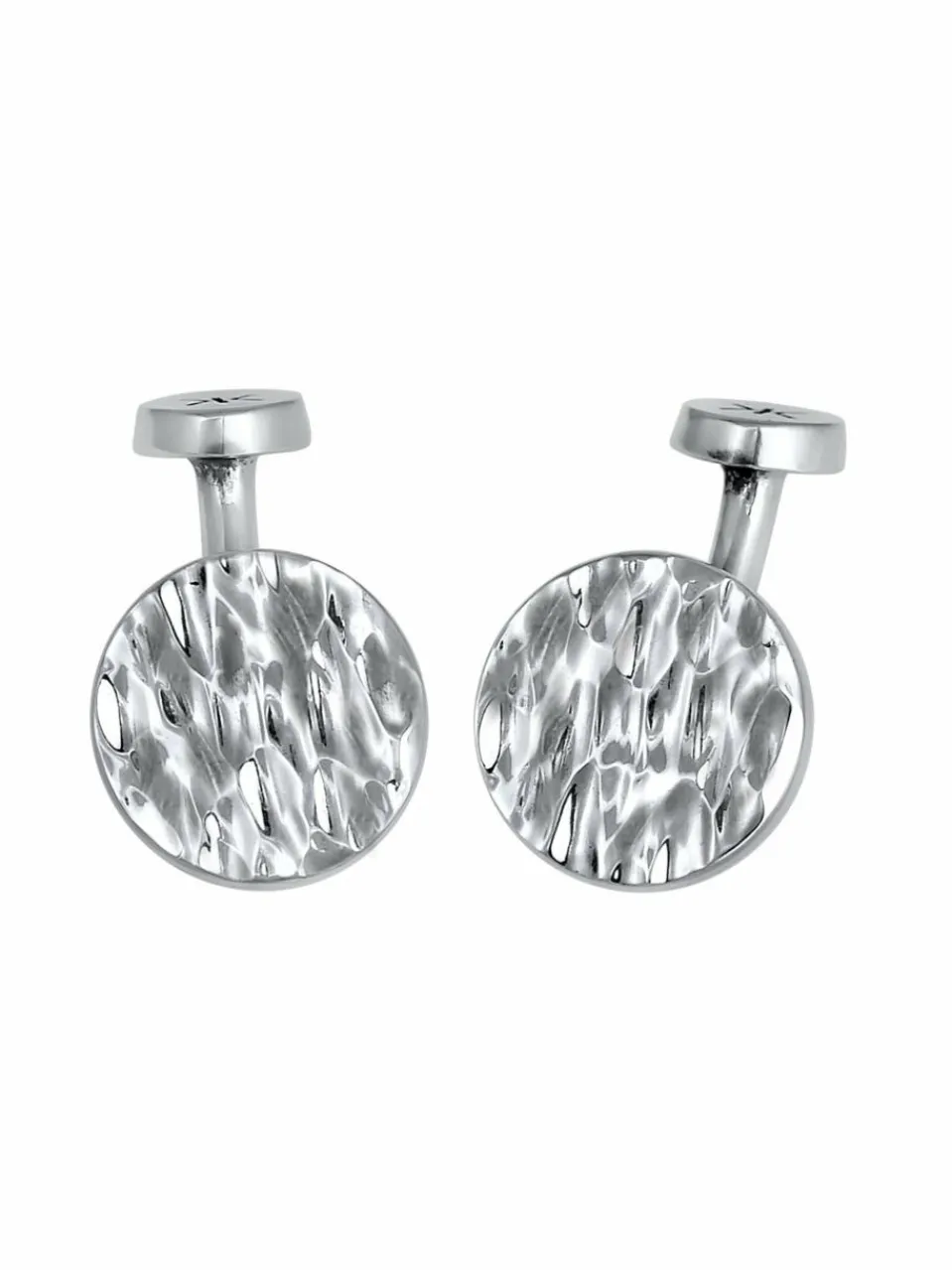 Rund geformte zeitlose Manschettenknöpfe die jeden Style einen edlen Charm verleihen. Die Plättchen Form mit strukturierter Oberfläche im Hammerschlag Design, verkörpert Extravaganz ob im Alltag oder im Büro. Dieses stilvolles Herren-Accessoire ist die perfekte Geschenkidee für den Vater, Freund oder Ehemann.Dieses exklusive Schmuckstück wird in einem eleganten Geschenk-Etui geliefert