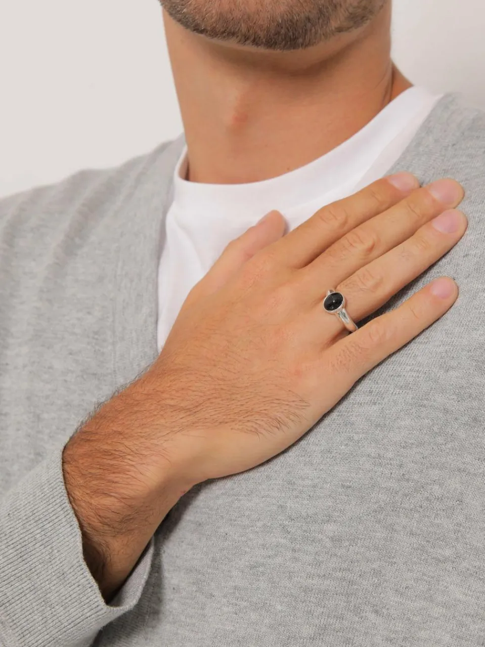 Mit diesem minimalistisch geformten Siegelring, wird klassische Epoche mit modernem Design kombiniert. Als Blickfang ziert ein oval geformter Onyx Edelstein das zeitlose Schmuckstück. Solides Design mit dezenten Details, wird bei diesem klassischen Herren Accessoire vereint. Dieser kraftvolle Herrenring lässt sich auch wunderbar mit anderen Schmuckstücken kombinieren. Ein einzigartiges Geschenk für einen einzigartigen Mann.
