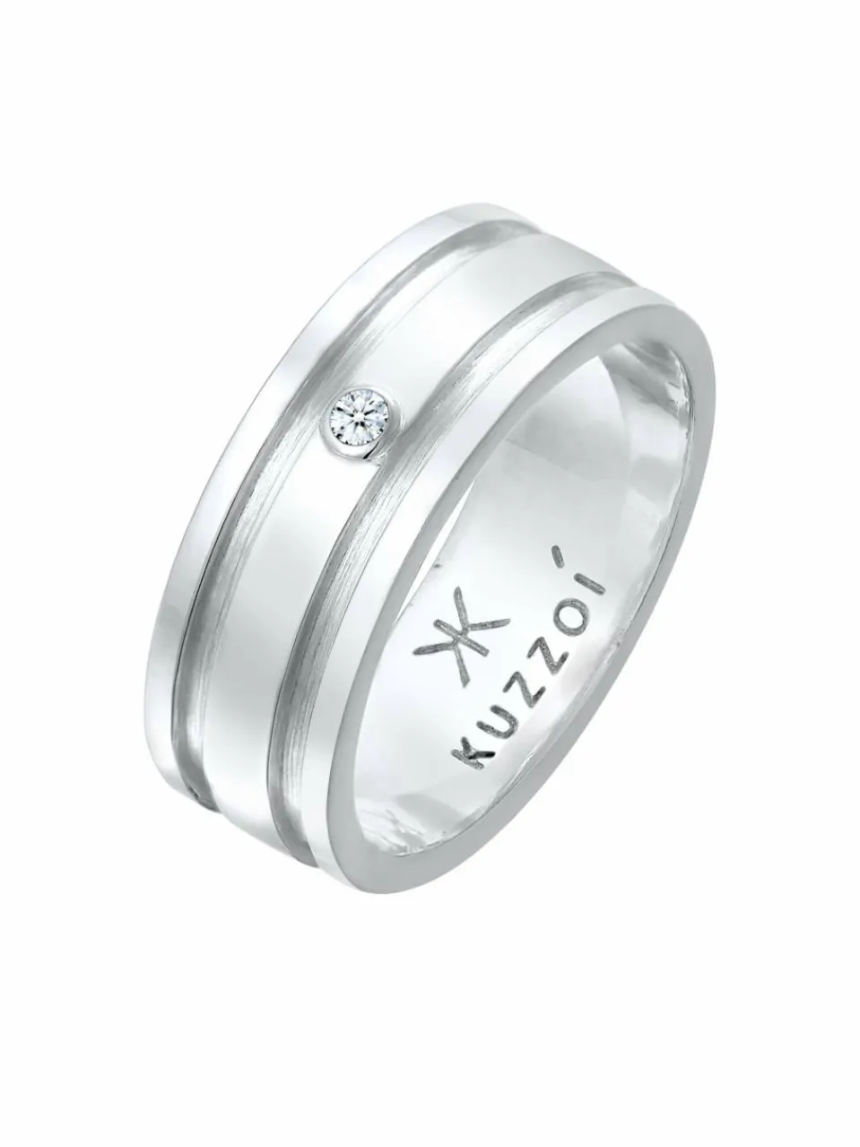 Dieser massive Bandring für den Mann, glänzt durch sein gradliniges Design. Als optisches Highlight durchbrechen zwei Streifen, die sonst so glatte Oberfläche. Darüber hinaus wird dieses Schmuckstück von einem Diamanten geziert. Das schlichte, aber auch durchaus auffällig Design ist ein markanter Blickfang. Ein stilvolles Accessoire das männliche Schmuckfans begeistert. Dieses exklusive Schmuckstück wird in einer eleganten Geschenk-Box geliefert.