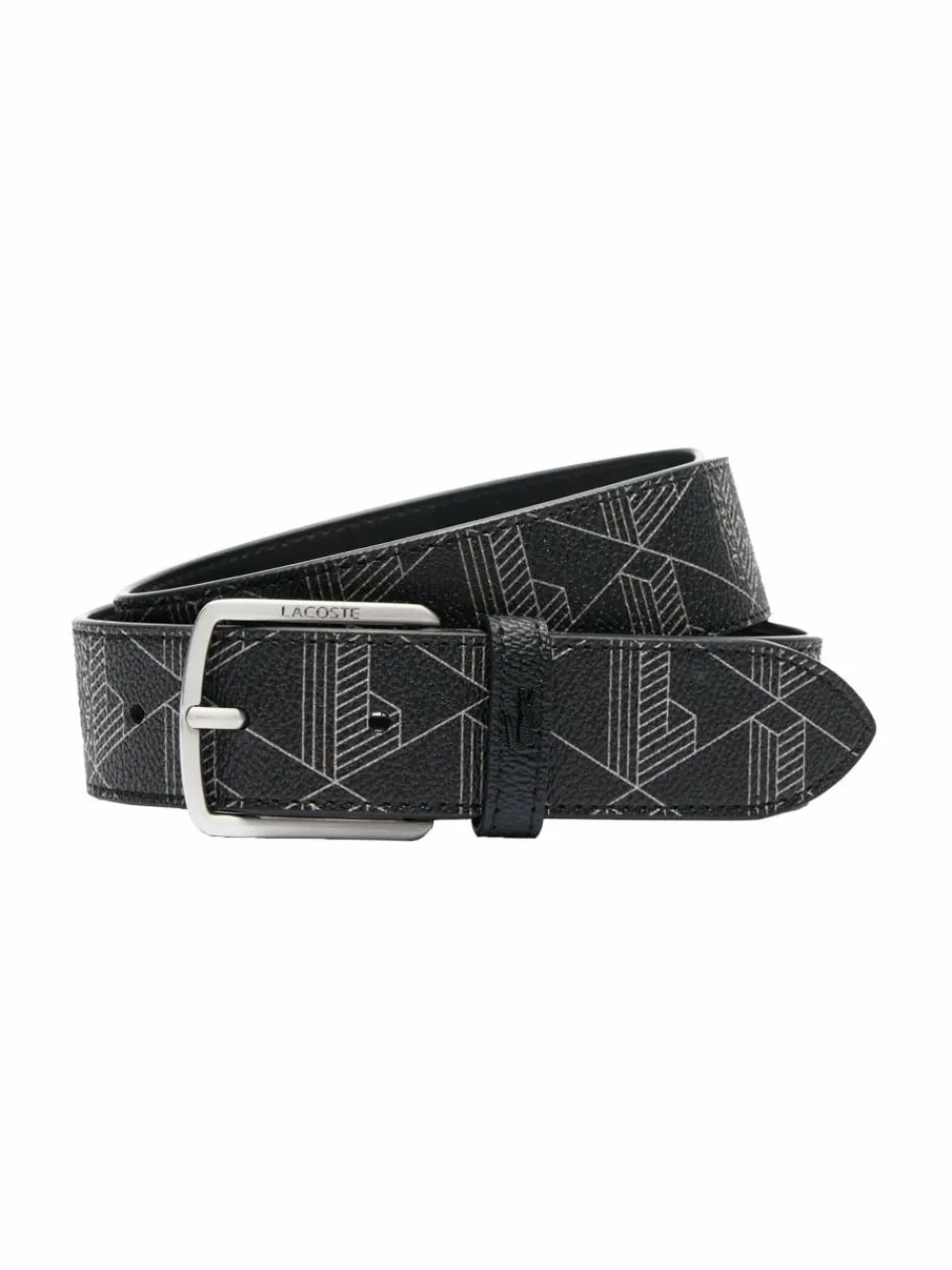 Klassicher Gürtel für Herren von der Marke Lacoste. Mit Monogramm-Aufdruck und kleinen Lacoste Logo Details. Perfekt für den Alltag.