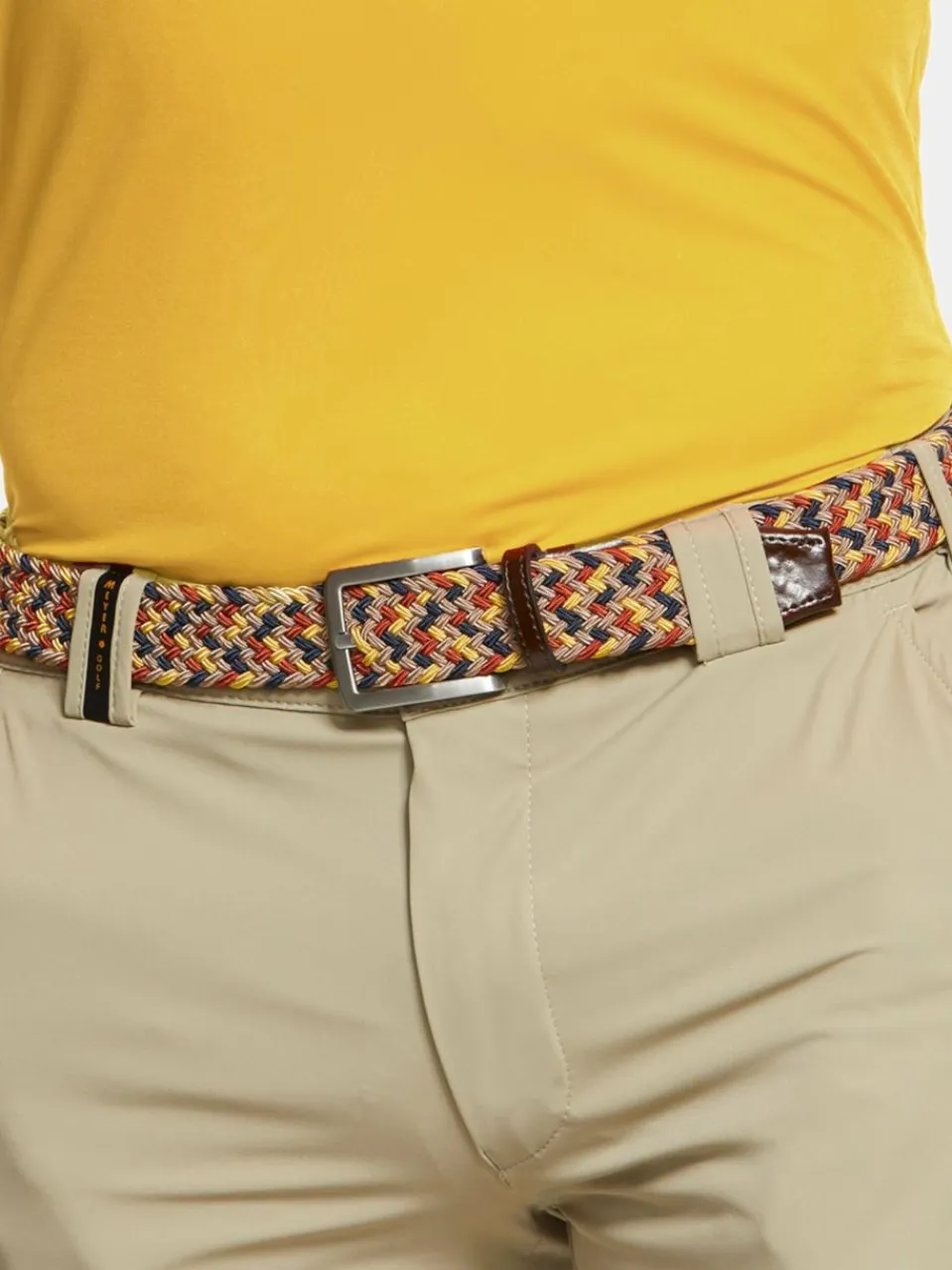 Moderner Stretchbandgürtel . Das elastische Band bietet optimale Bewegungsfreiheit und unterstreicht einen sportiven und lässigen Look. Für ein harmonisches Gesamtbild sorgt ein farblich abgestimmtes Endstück aus hochwertigem italienischen Leder.