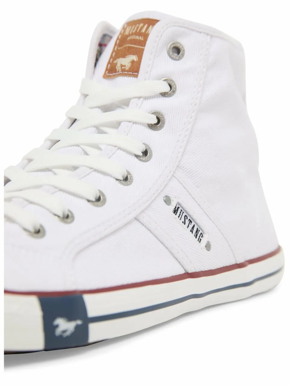 Diese leichten Sneakers von Mustang sind Schuhe, die man gerne trägt. Total im Trend und lässig designt, machen sie zum Freizeitoutfit eine tolle Figur. Zu den Highlights gehören die weiße Schutzkappe, Label-Applikationen und farbliche Akzente an der Sohle. Dank der Ösenschnürung kannst du den Schuh optimal an deine Fußform anpassen.