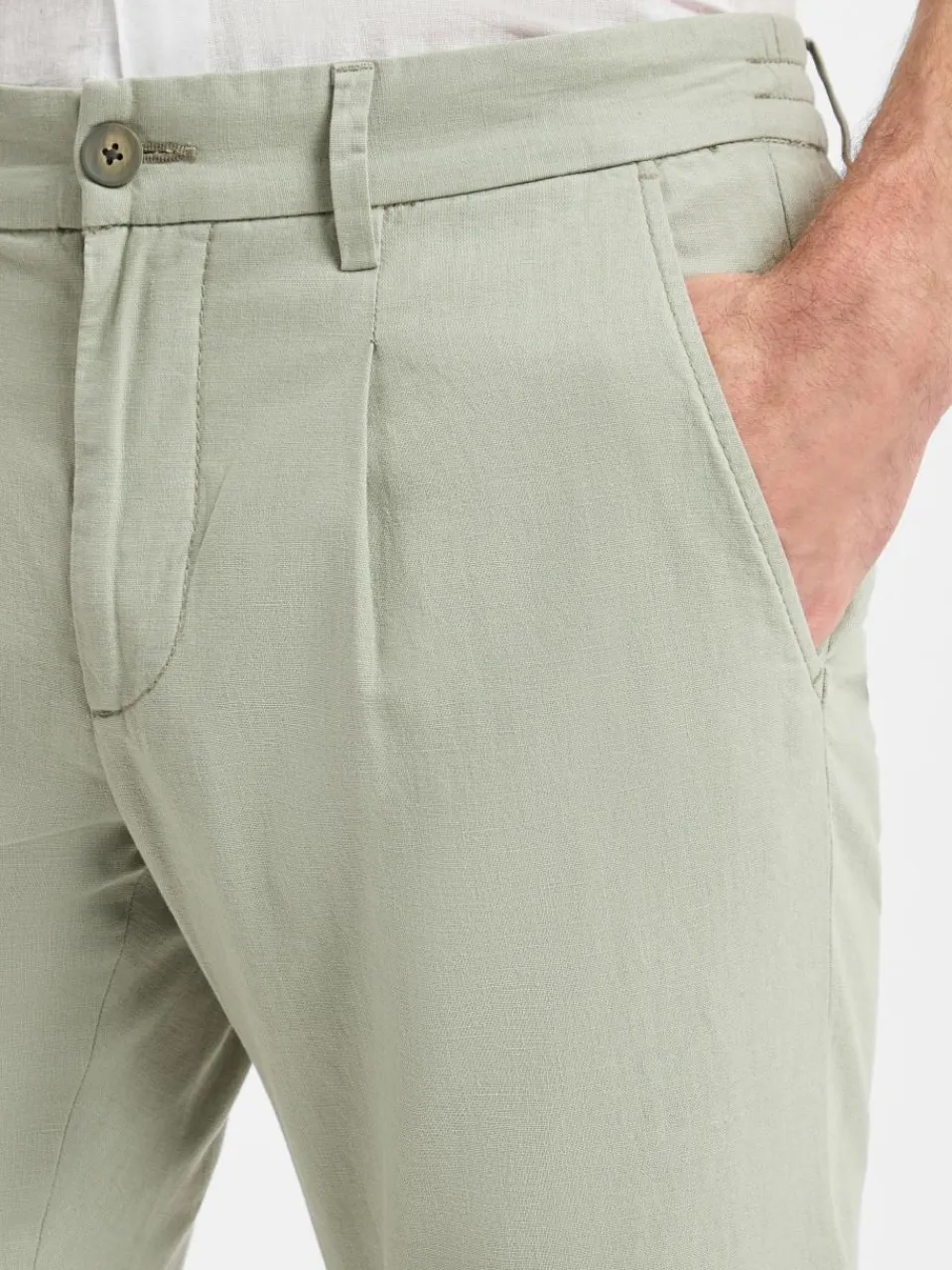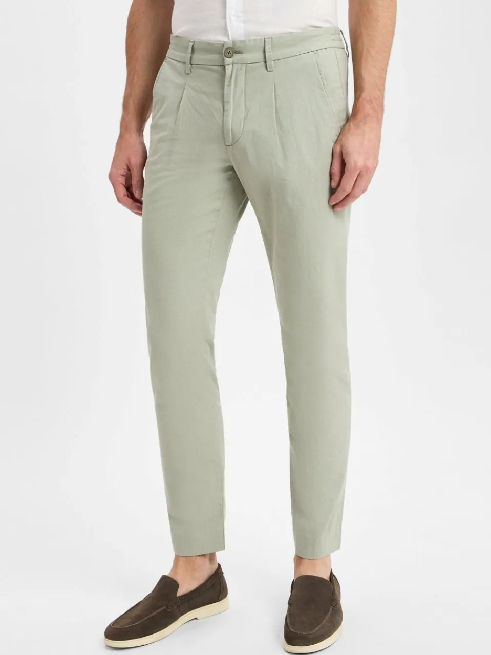 Dank des hohen Leinenanteils und desteilelastischen Bunds garantiert die Hose von Nils Sundström einen besonders hohen Tragekomfort. In Kombination mit einem Sakko kann sie auch als Anzug getragen werden.