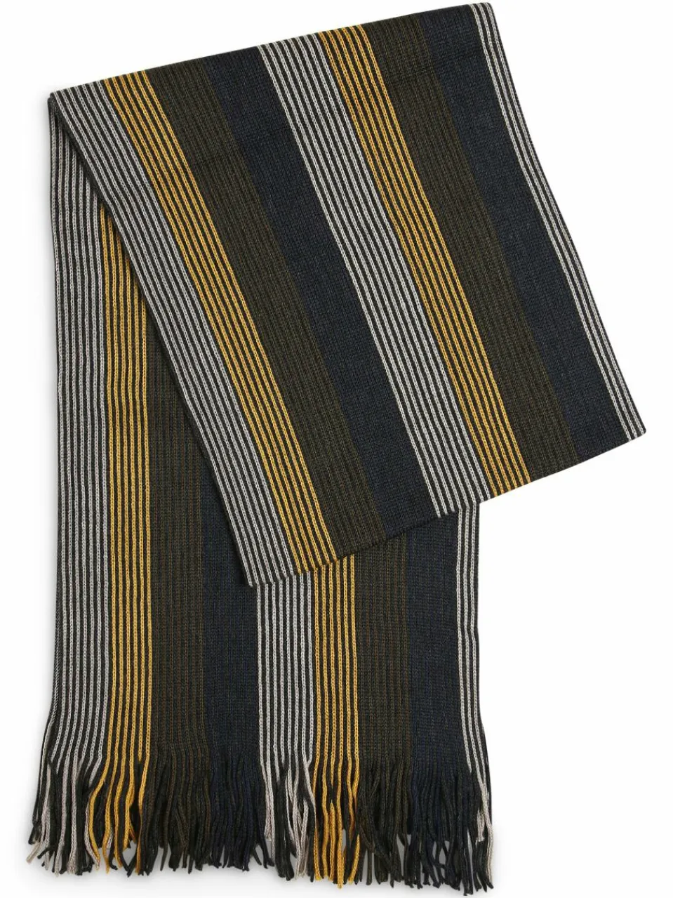 Dank des Rippstricks kommt das Streifenmuster bei dem Nils Sundström Schal besonders raffiniert zur Geltung.