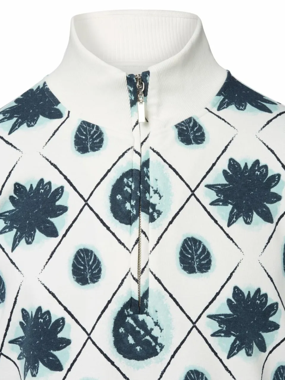 Das Sweatshirt von Nils Sundström zeigt sich im Troyer-Design mit typischem Kragen samt Zipper und zeichnet sich durch die weiche Qualität und den coolen Allover-Print aus.