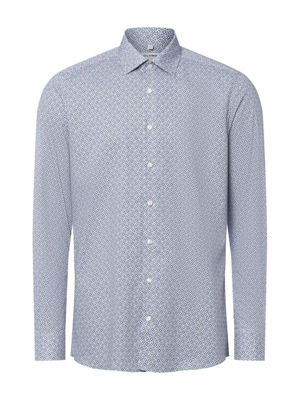 Das OLYMP Level Five Businesshemd setzt auf eine angenehm leichte Baumwoll-Qualität und ein feines Allover-Muster im Retro-Stil.