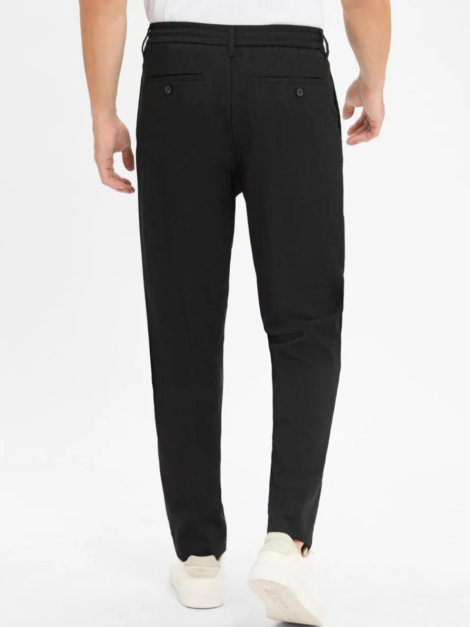 Lässige Hose von Selected im Relaxed und Tapered Fit aus stretchigem Viskose-Mix mit rückseitigem Elastikbund samt Tunnelzug, Bund- und Bügelfalten sowie Leistengesäßtaschen für einen smarten Look mit Komfort.
