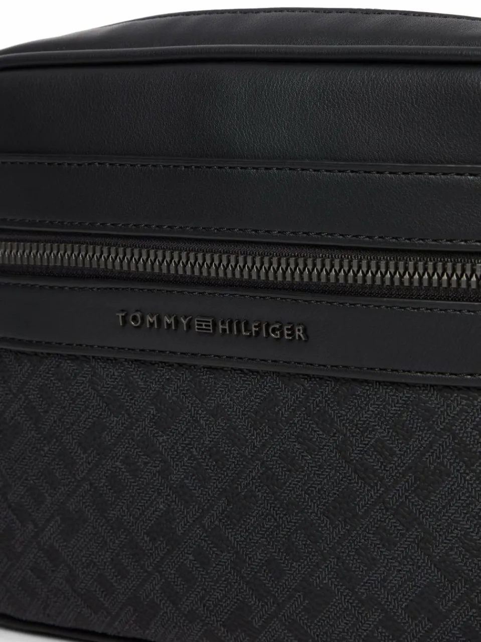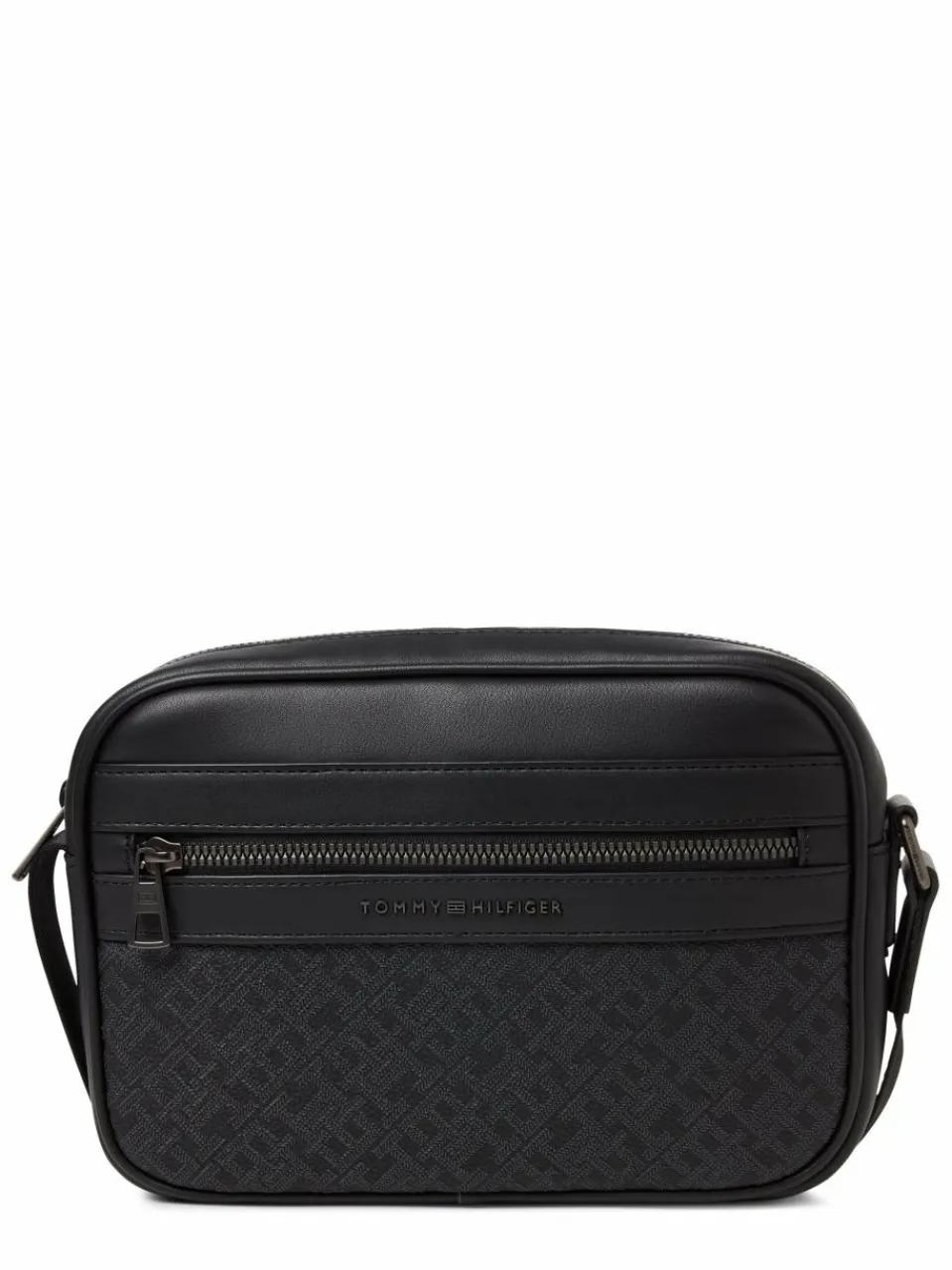 Kompakter Begleiter mit Stil für jeden Tag: die Tommy Hilfiger Reporter Bag aus Kunstleder im partiellen Monogram-Design und mit längenverstellbarem Crossbody-Strap.