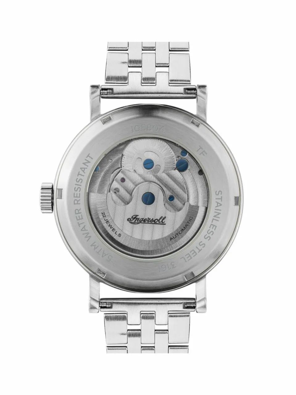 Für den Uhrenliebhaber ist die Automatikuhr The Charles 44mm ein treuer Begleiter. Aus Edelstahlerscheint die skelettierte Uhr mit lumineszierenden Zeigern stilvoll und klassisch. Die Uhr ist bis zu 5 bar wasserdicht. Jede Ingersoll Uhr wird in einer hochwertigen Ingersoll Kunstlederbox verpackt.