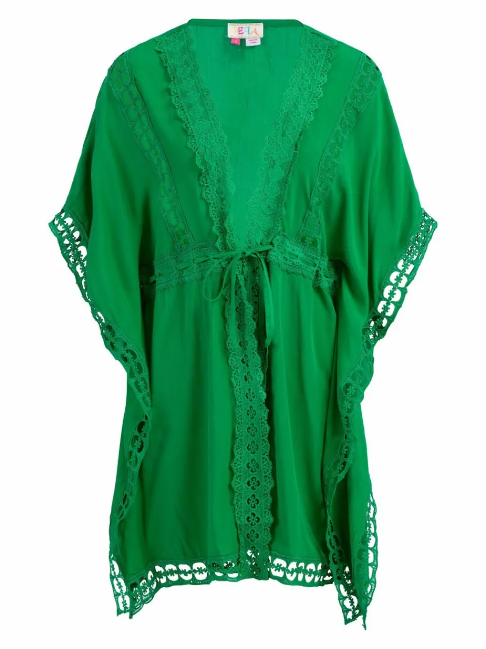 Auch in diesem Sommer überall zu sehen: die Broderie Anglaise oder auch Lochstickerei. So auch bei IZIA, allerdings im ganz großen Stil, denn statt kleiner zarter Löcher werden in dieser Saison die Löcher deutlich größer. Gefertigt aus reiner Viskose, mit weiten Ärmeln und Taillenband ist er im Urlaub unverzichtbar. Einfach über den Badeanzug ziehen und schon sind Sie auf jeder Beachparty up to date. Wer mag, kann den Kimono aber auch in der City tragen und ihn einfach mal zu Denim kombinieren.