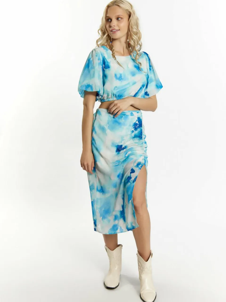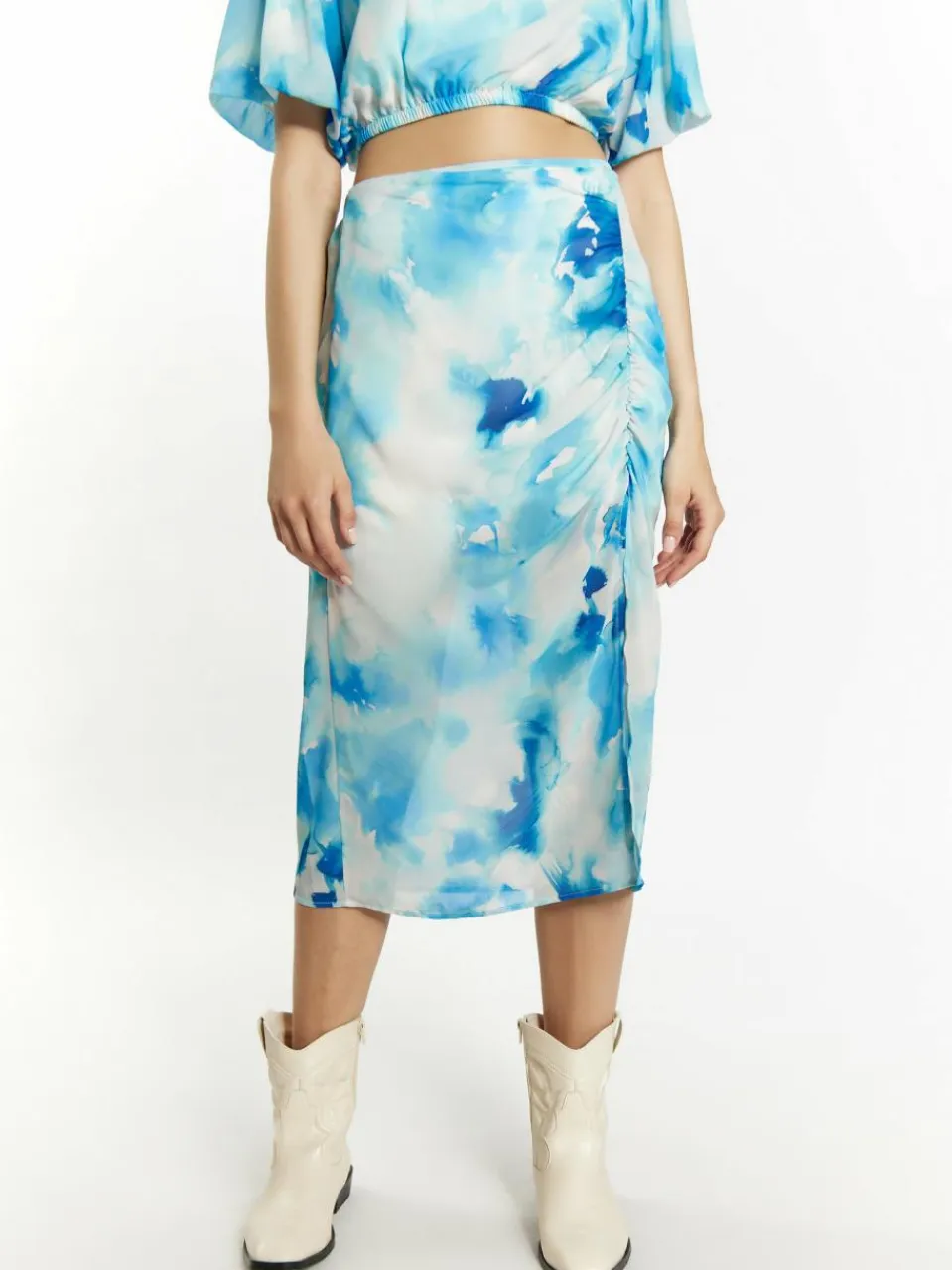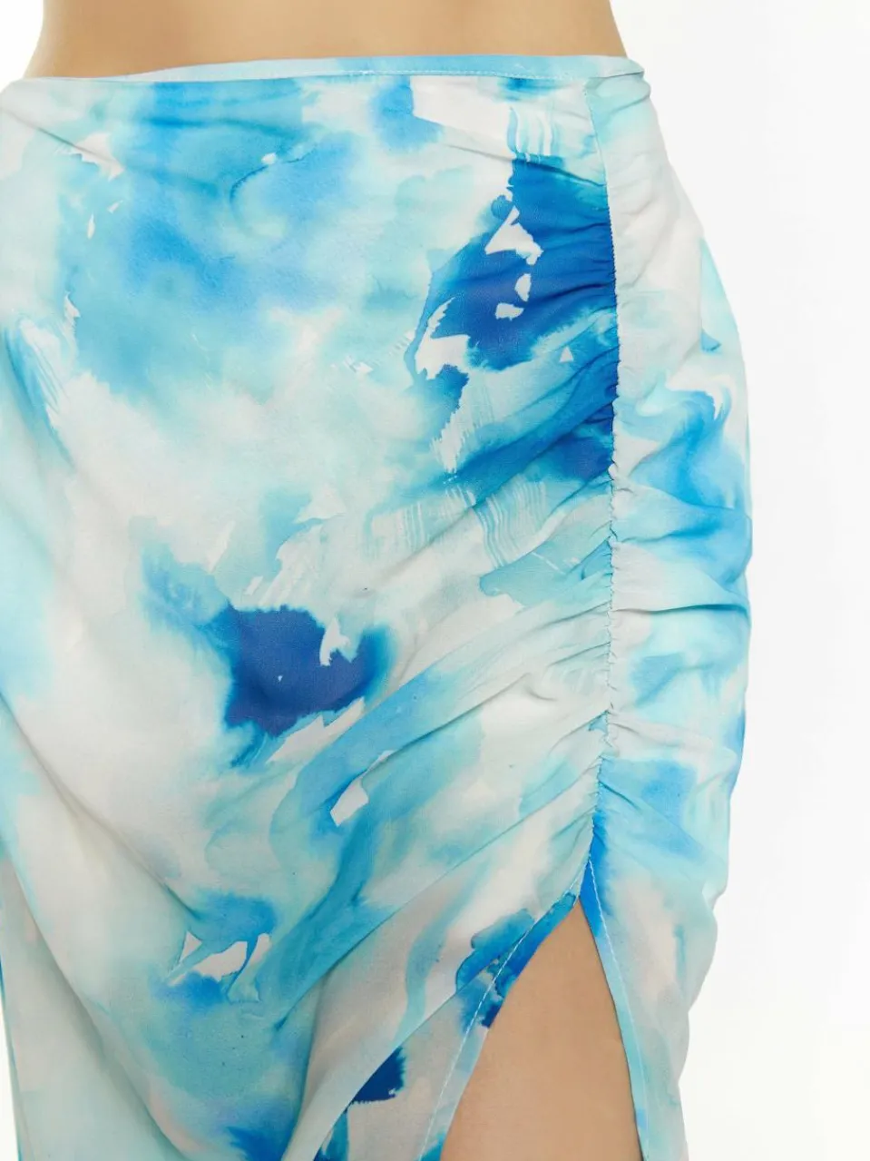 Dieser in Italien gefertigte Rock von IZIA verströmt sonnige, chillige Vibes. Gefertigt aus einem weichen und nachgiebigen Material befördert uns das Design im Batik-Muster gedanklich direkt in den Lieblings Beach-Club. Party- und cocktailtauglich wird das Design durch die Raffung auf der Vorderseite. Da das Innenfutter kürzer ist als der Rock, kommt auch noch ein Hauch von Transparenz ins Spiel.